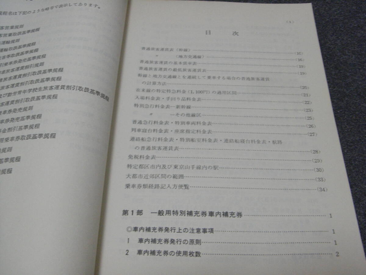 199ページ・各運賃表・各料金表ほか/第1部 一般用特別補充券車内補充券 車内補充券発行上の注意事項・車内補充券の記入例/第2部 地図式特殊区間用特別補充券 地図式特殊区間用特別補充券発行上の注意事項・地図式特殊区間用特別補充券の記入例/第3部 駅名式特殊区間用特別補充券 駅名式特殊区間用特別補充券発行上の注意事項・駅名式特殊区間用特別補充券の記入例/第4部 車掌関係の収入帳票 車掌扱運賃引継書作成上の注意事項・旅客運賃訂正通知書の記入例/割引及び後払乗車券乗車変更一覧表/乗車券類に対する表示および証明方一覧表