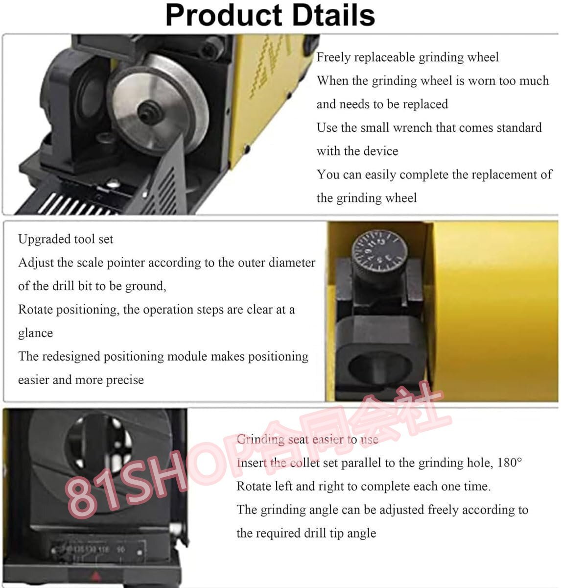 ポータブルドリルシャープナー: このドリルシャープナーは、正確で、高速、操作が簡単です。 研ぐのに経験は必要ありません。 サイズが小さく、片手で持ち上げることができ、工場、ワークショップ、または日常の個人使用に適しています。 簡単に使用できるように詳細な説明書が付属しています。