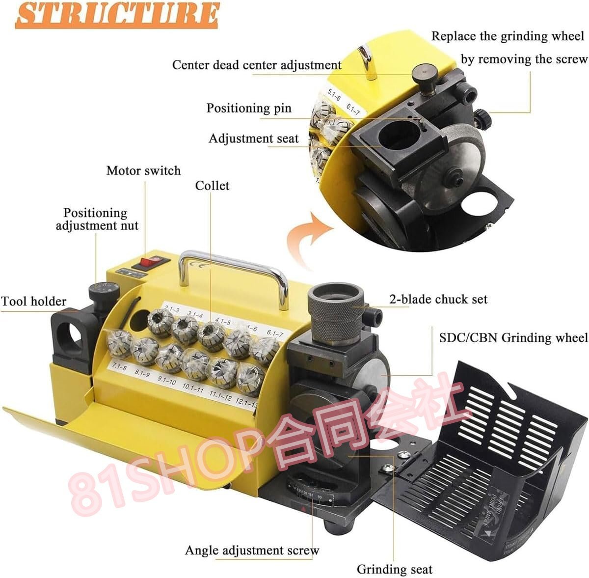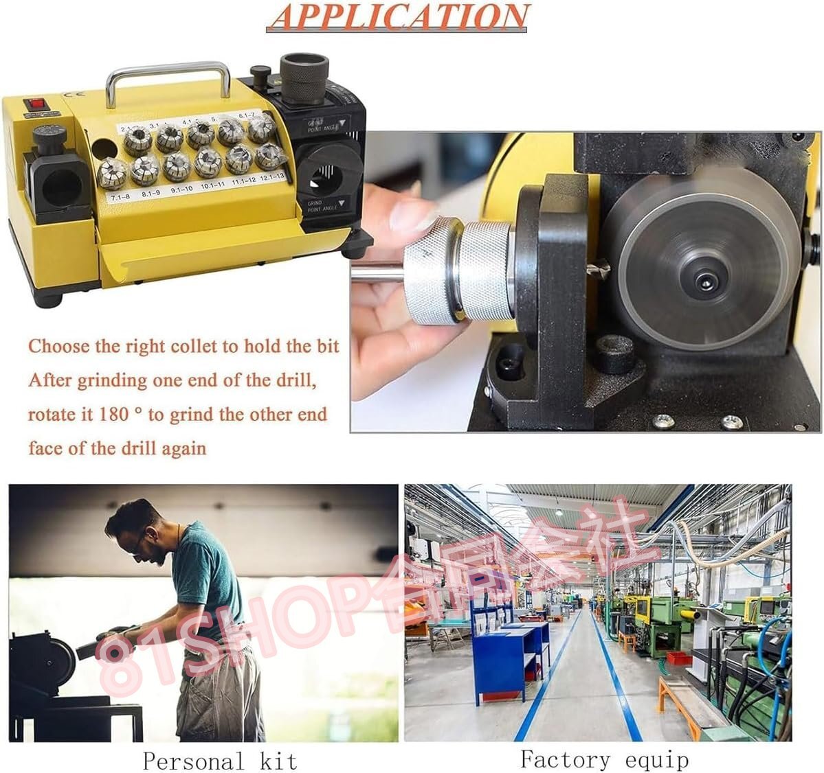 ドリルビットシャープナー、3-13mmポータブル多目的ドリルビット研削機、11個のコレット付き、電動ドリルビットシャープナー、95°-135°
