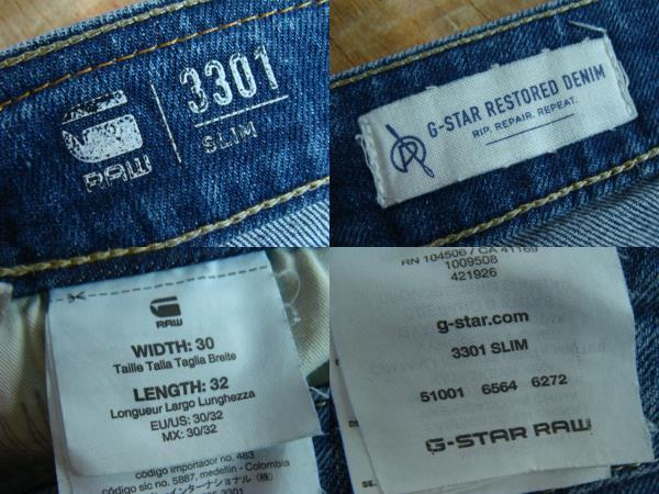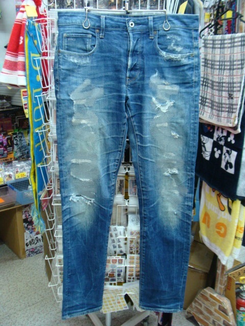 【ダメージあり】G-STAR RAW ジースターロウ ボタンフライ リペア加工 スリムジーンズ (W30) | |||||||||||