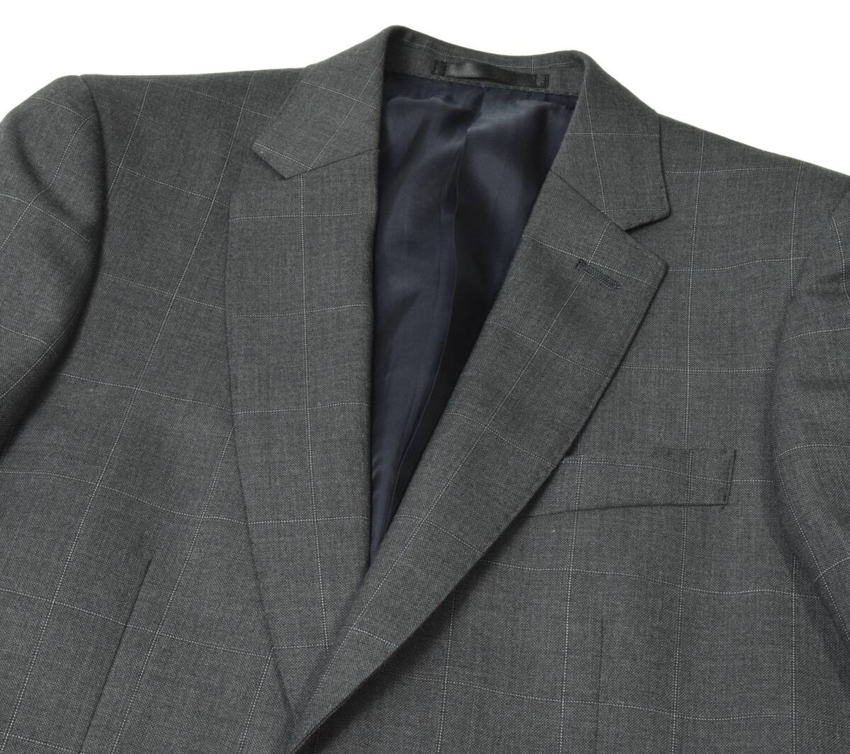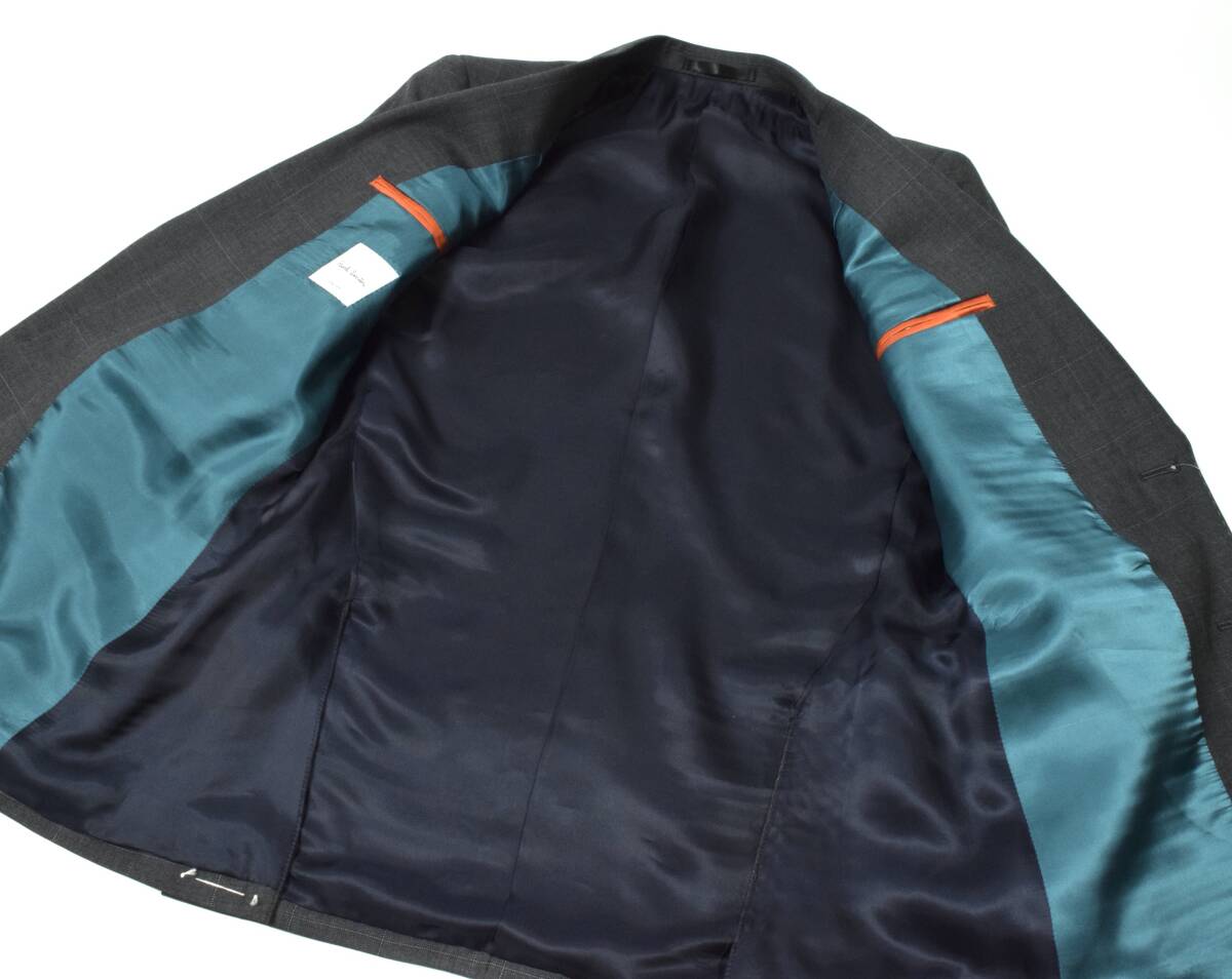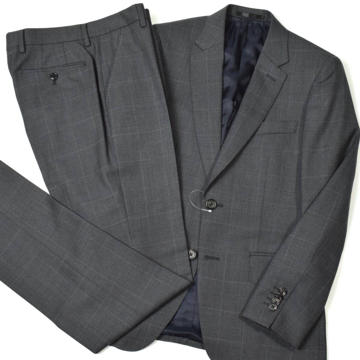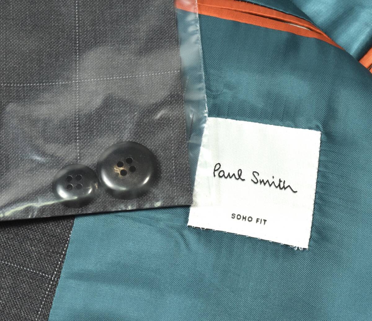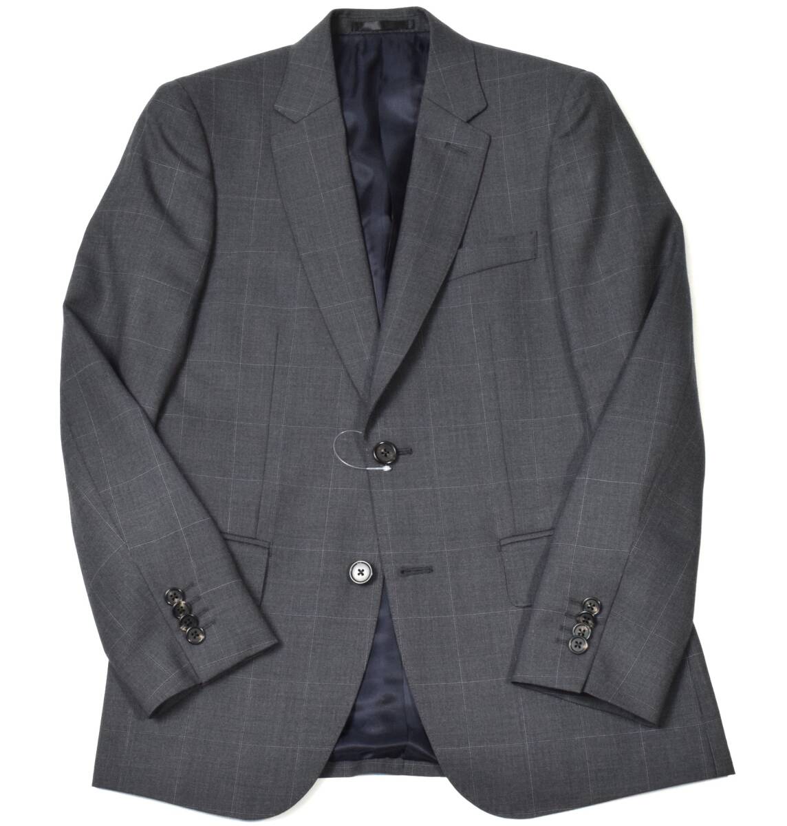 Paul Smithのウインドーペン柄スーツ。 ジャケットは2ボタン、バックはサイドベンツ、裏地は総裏地、袖ボタンは飾りボタン、内ポケット×2を完備。 パンツはノータック仕様、裾は未処理の状態になります。 定価は税込みで88000円 日本製 | ||||||||||||||||