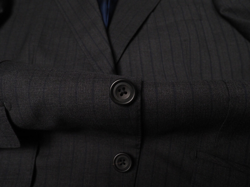 水牛ボタン、本切羽、AMFステッチ、お台場仕立て、キュプラ裏地、毛芯を用いた縫製など、既製品のブランドスーツではここまで仕立てにこだわったスーツは手に入りません。サルトリア仕立てで作成されたハイエンドモデルです。