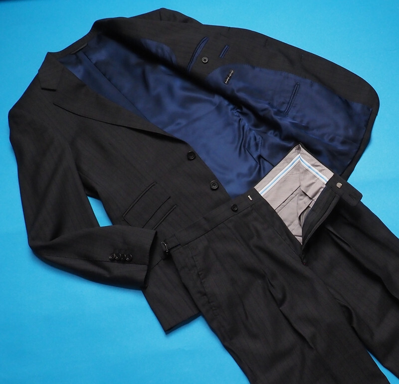 スーツの既製品は製造されておりませんので、大変希少な1点物になります。サイズが合えば大変お得です。