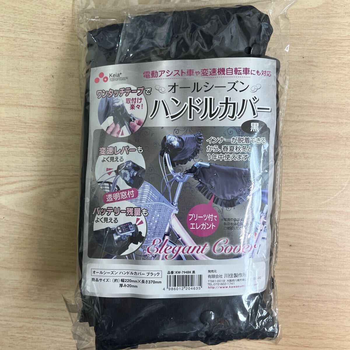 【新品】KW-794BK 川住製作所 Keia+ 自転車 ハンドルカバー オールシーズン ブラック ブリーツ付 インナー脱着 電動アシスト車対応 カバー