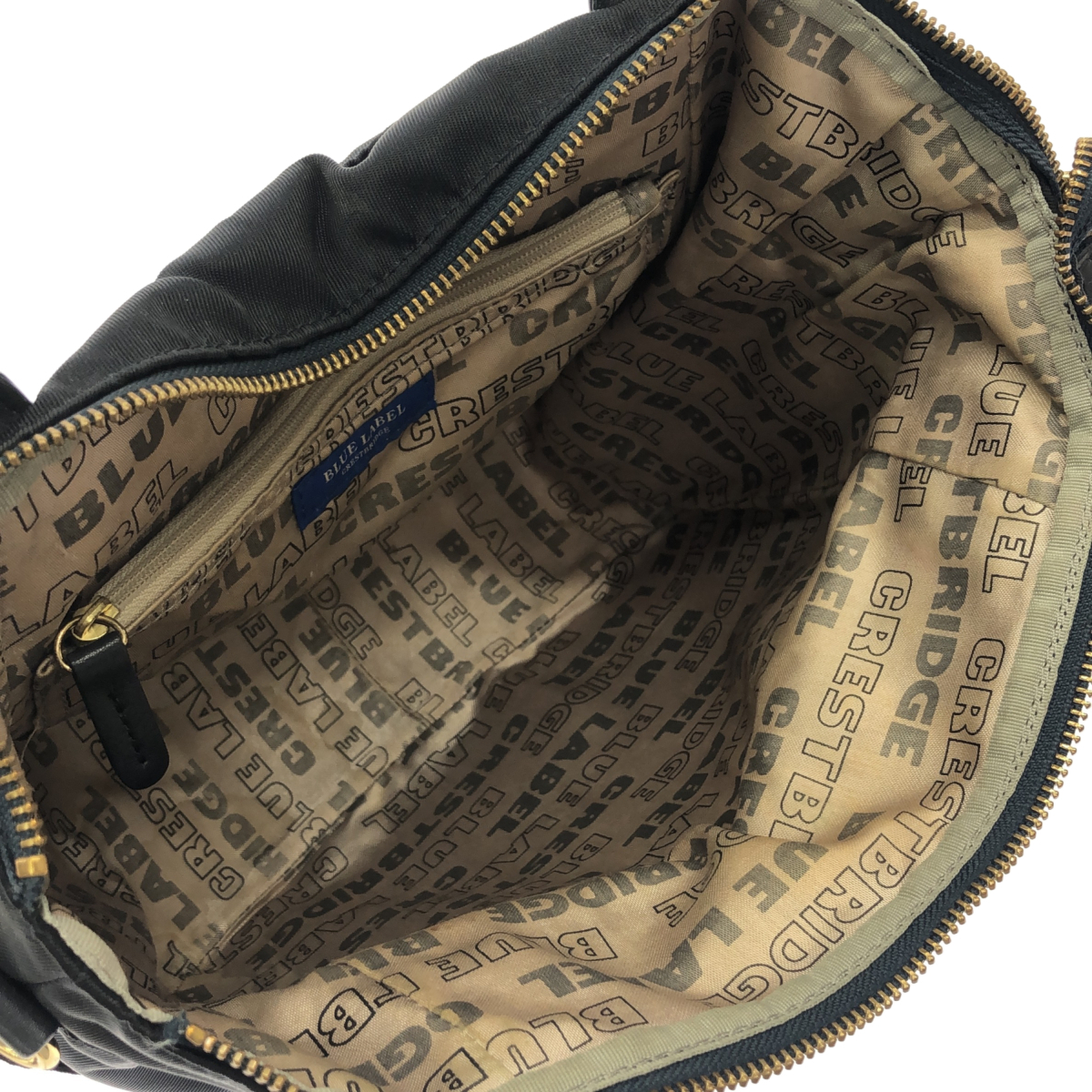 | STAFF COMMENT | ネイビーのナイロンを使用した、BLUE LABEL CRESTBRIDGE(ブルーレーベル クレストブリッジ)の2WAY ショルダーバッグです。上品なネイビーカラーがコーディネートを選ばず上品に映えます。肩掛け、斜め掛け、またはハンドバッグとして多様な使い方が可能です。状態はBランクです。取っ手部分のレザーに擦れや使用感があります。 |