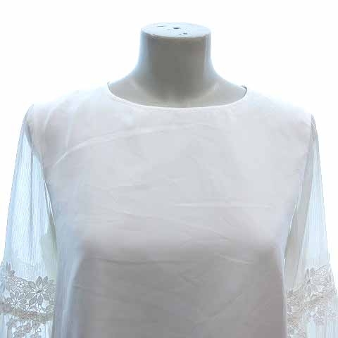 クイーンズコート QUEENS COURT ブラウス 切替 シアー レース 長袖 2 M 白 ホワイト /YK レディース