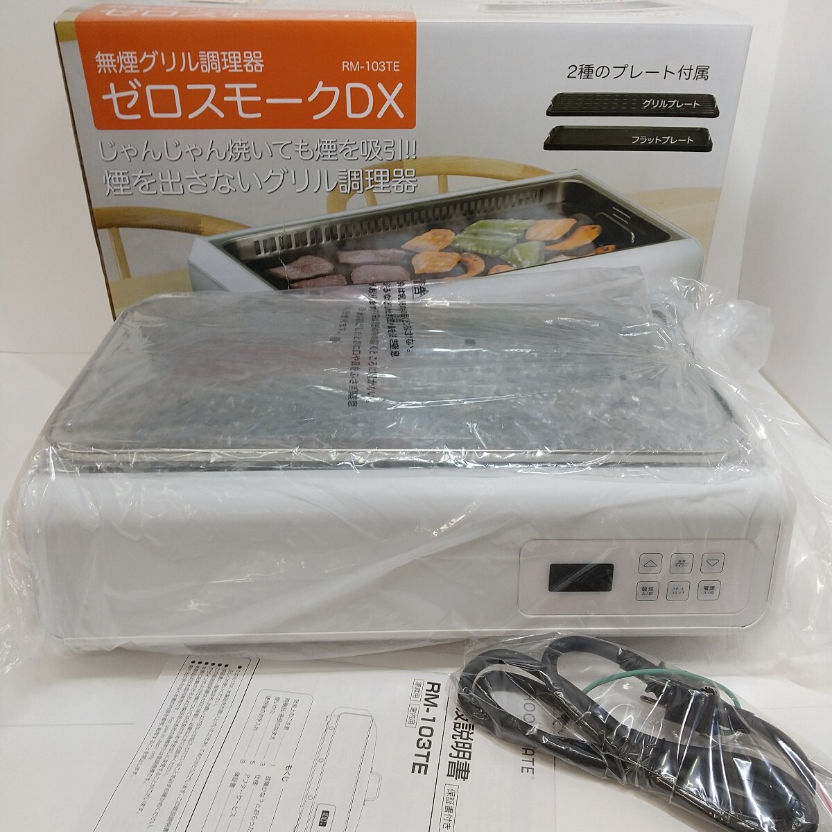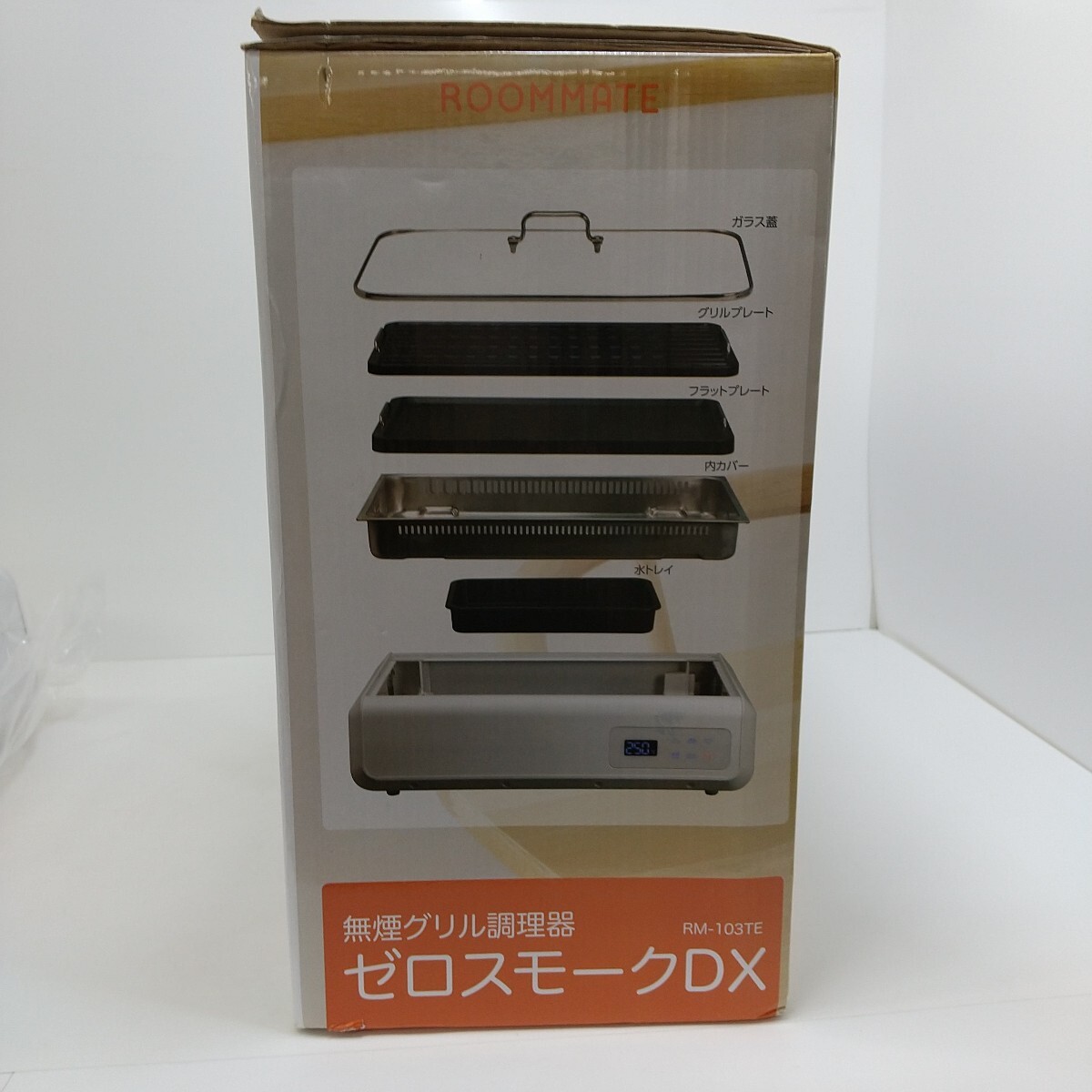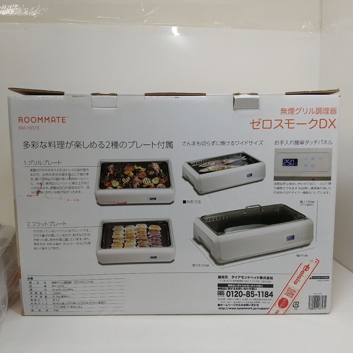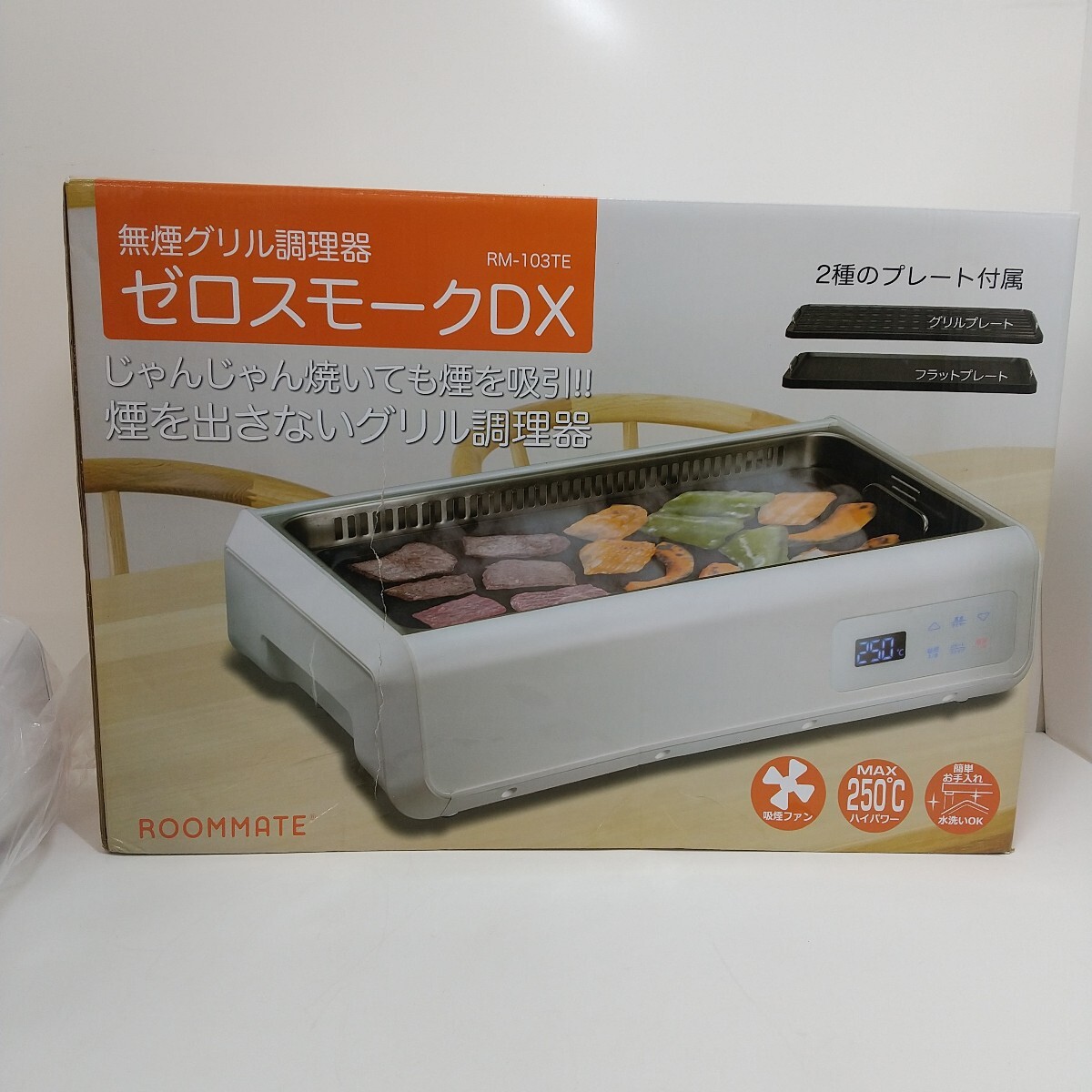 【商品名】 無煙グリル調理器 ゼロスモークDX 【メーカー】 ROOMMATE 【型式】 RM-103TE 【付属品】 全て揃っています。 【状態】 通電確認済みの未使用品です。 美品ですが、長期保管品のため箱痛みなどあります。 上記ご理解ある方にご検討お願いいたします。 ※画像の外箱に送り状貼付し送付します。 ****************************************************** 管理番号 K12 |