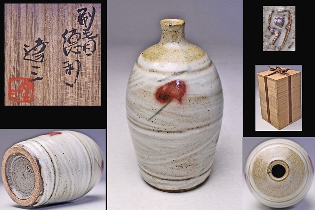 島岡達三 ★ 刷毛目徳利 ★ 共箱 ★ 希少 ★ 益子焼 ★ 人間国宝 ★ 濱田庄司に師事 ★ 辰砂 ★ 民芸陶器 ★ 酒器 ★ 味わい深い逸品 ★