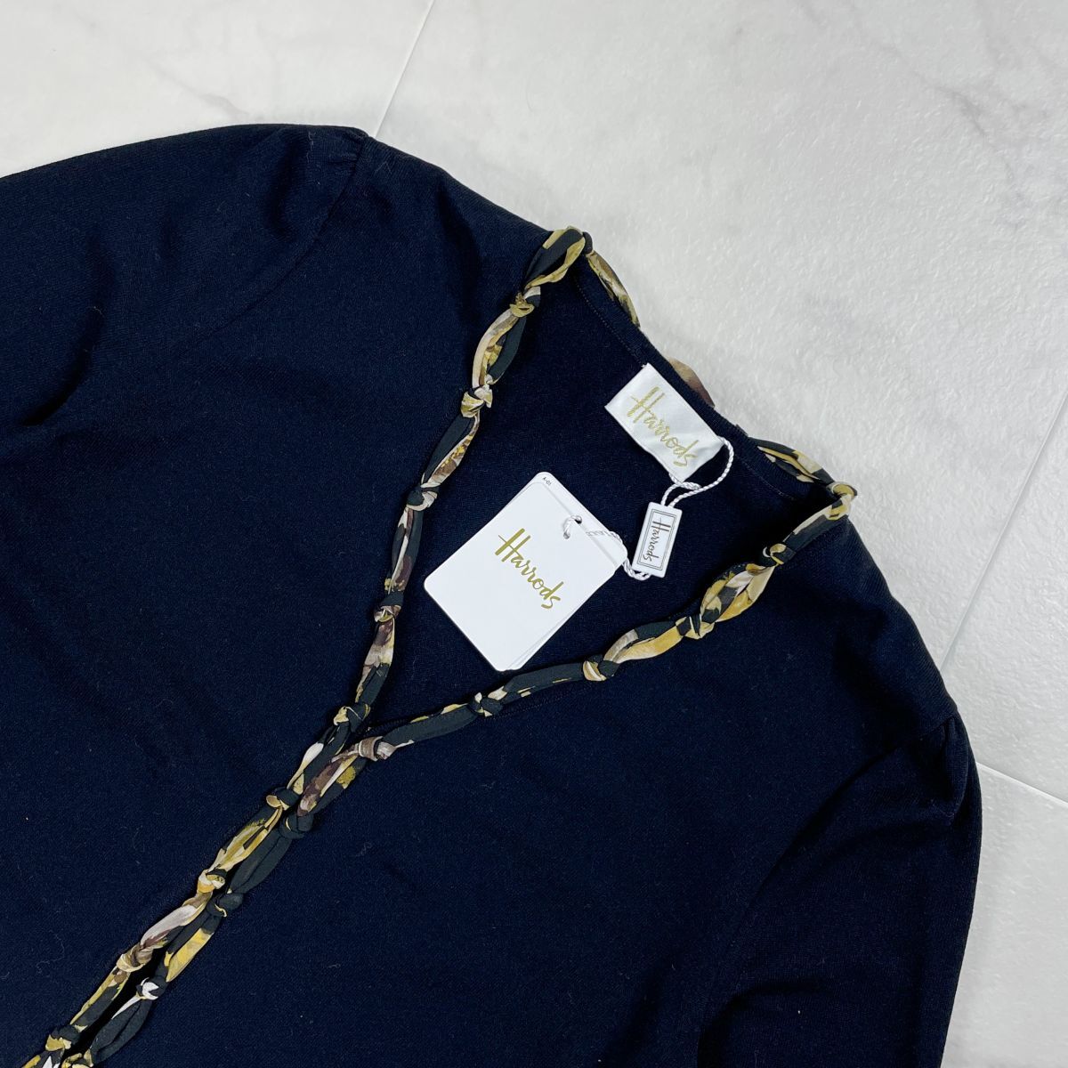 新品未使用 Harrods ハロッズ ウール混 Vネックショート丈カーディガン トップス レディース ブラック 黒 サイズ2*BD900