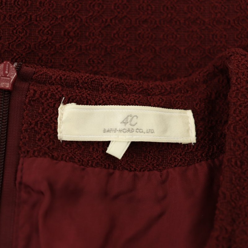 ヨンドシー 4℃ タイトワンピース ノーカラー ひざ丈 ボルドー /CX ■OS ■AX レディース