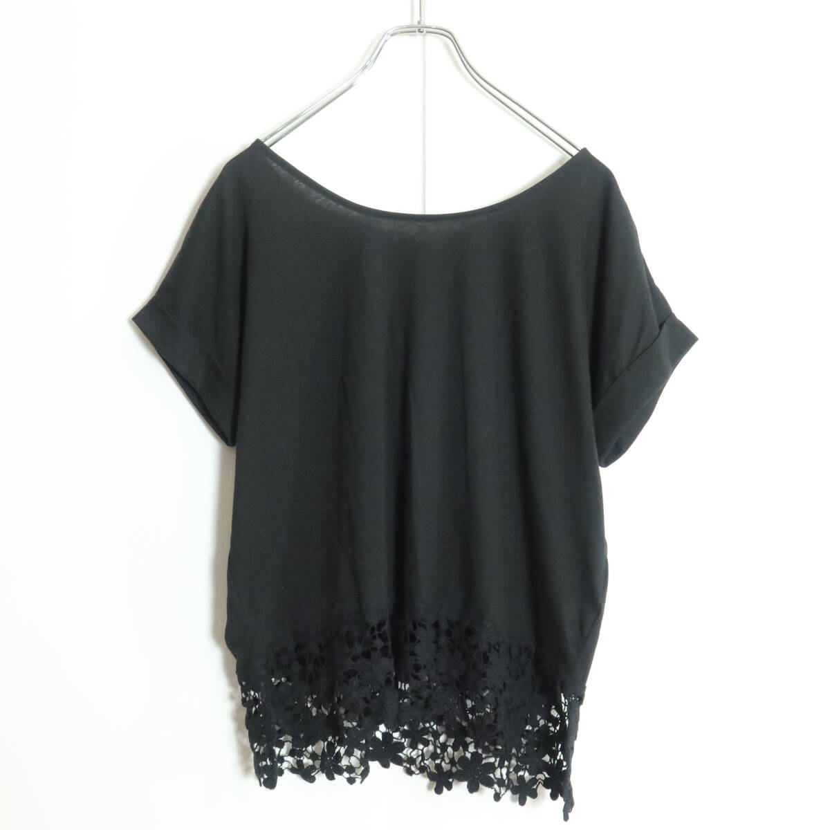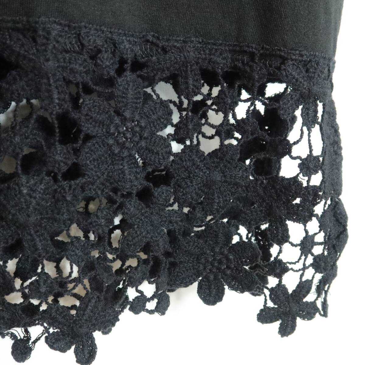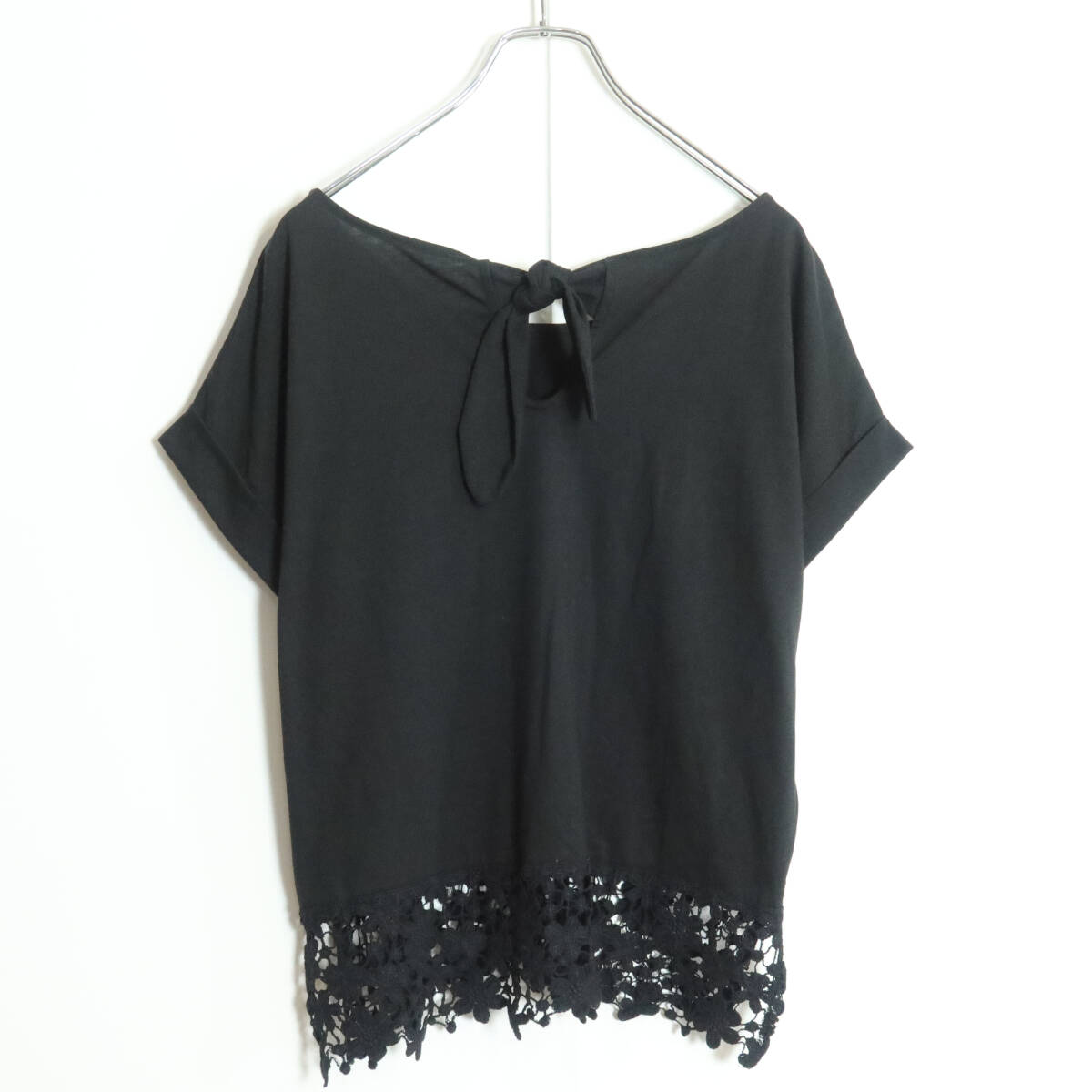 商品説明 | 【実寸約】バスト112着丈60(cm) 【サイズ表記】 * 【素材】ポリエステル65%綿35% 【状態】普通の使用感のあるお品物 【デザイン】黒系 裾の花モチーフのレースが可愛いカットソーです。 後ろのリボンタイ風デザインが素敵な一着です。 薄手/無地 |