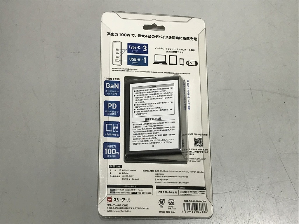 【未使用】 スリーアール 3R PD充電器 3R-ACPD100