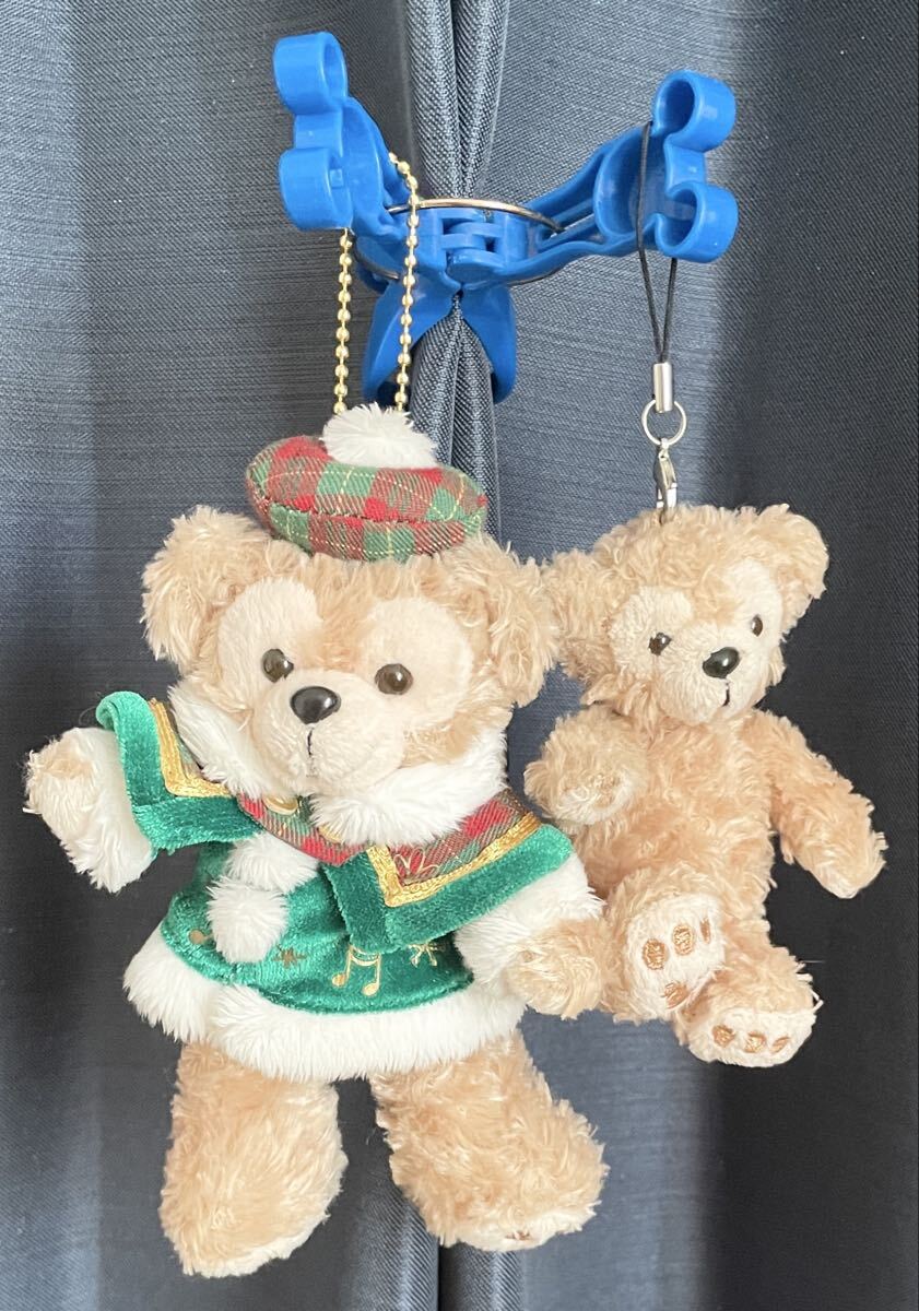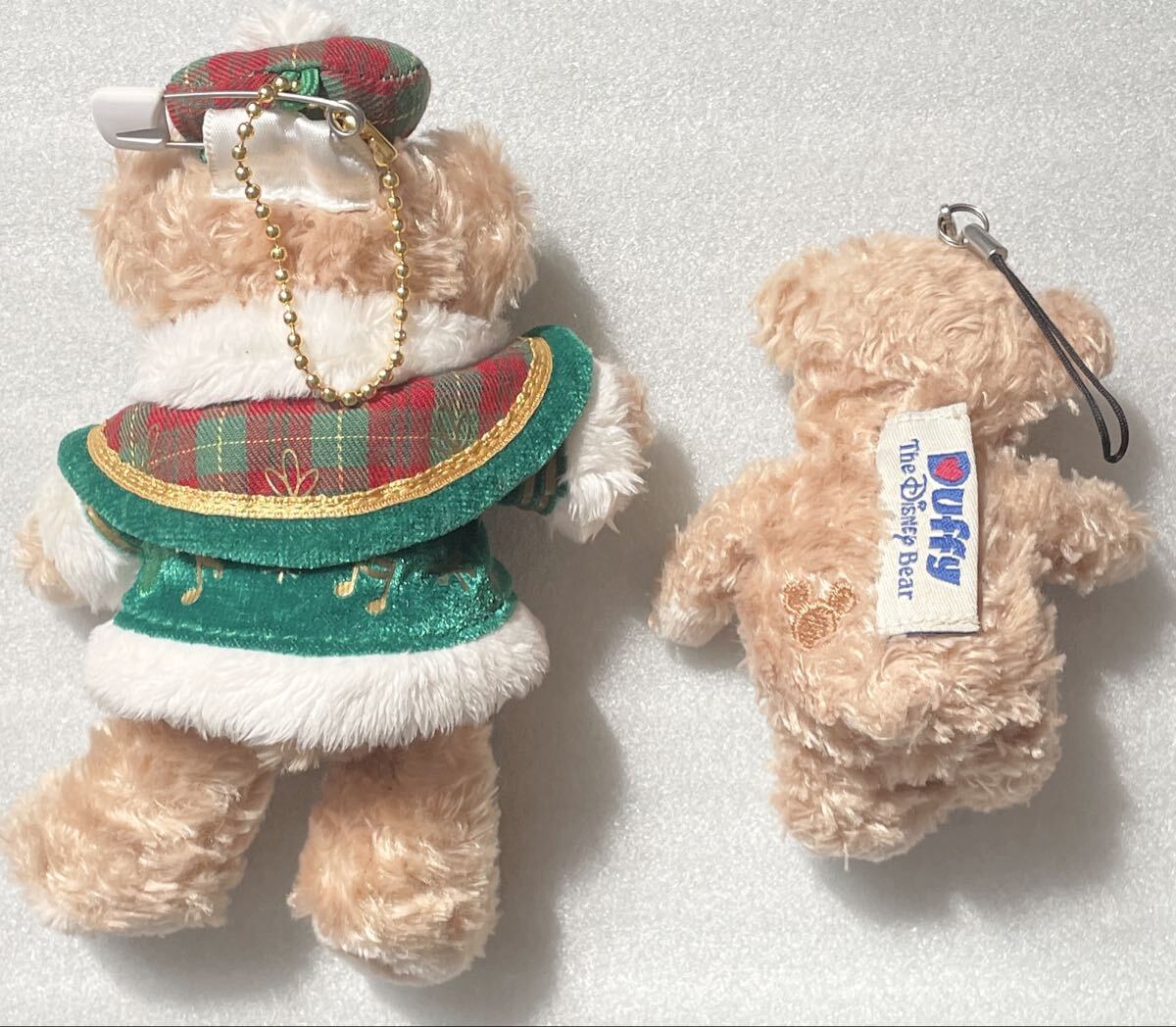 ●東京ディズニーシーで2012年クリスマスの記念で購入した、クリスマスコスチュームのディズニーベア・ダッフィー、ぬいぐるみバッジキーホルダーです。期間限定商品です。キーホルダーチェーンと安全ピン付なので、キーホルダーとしてもバッジとしてでもご利用いただけます。