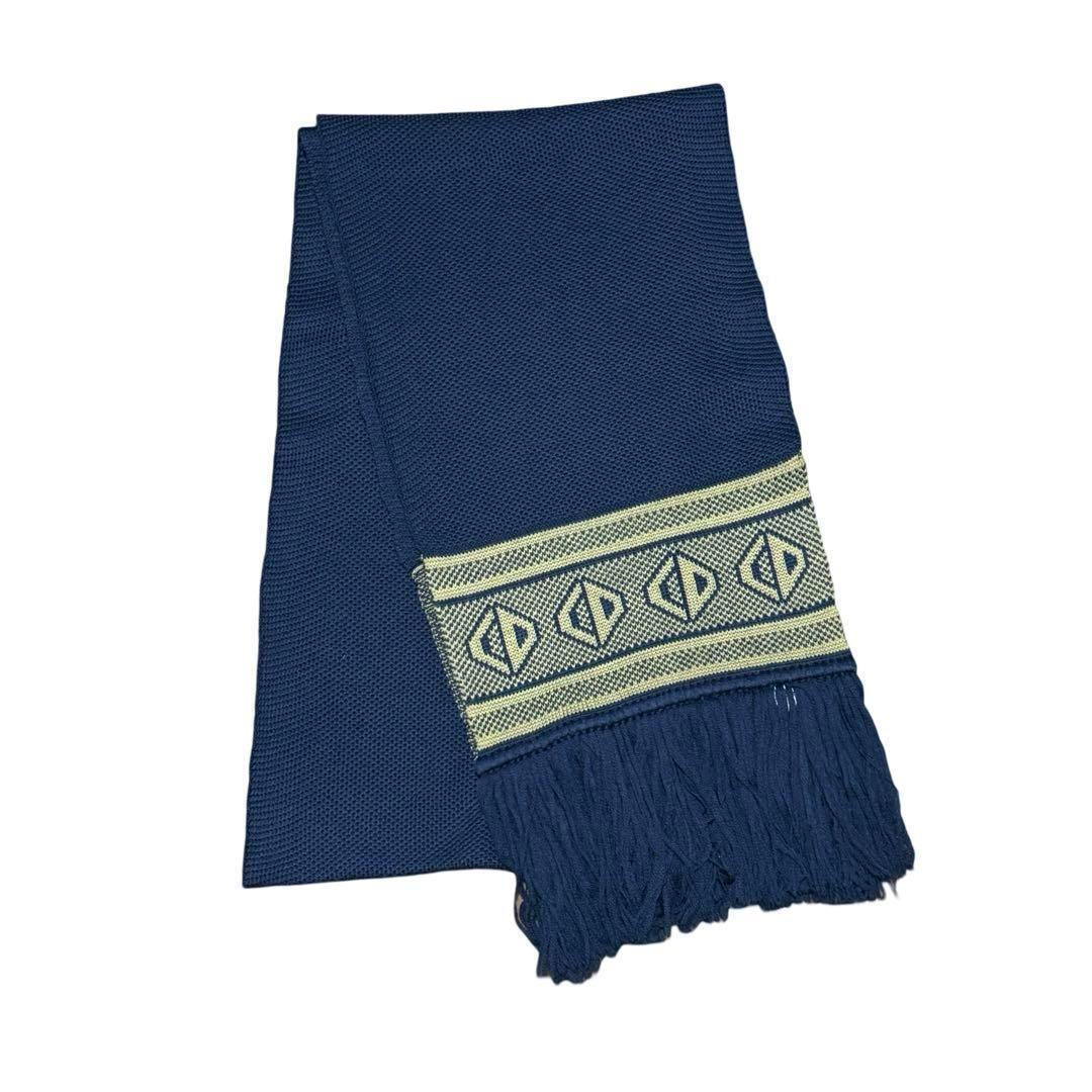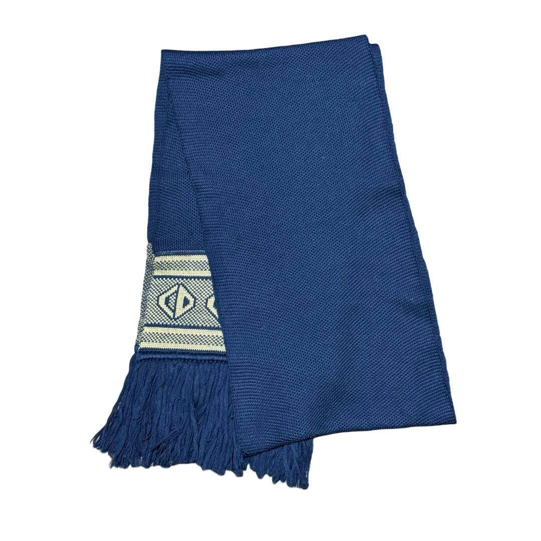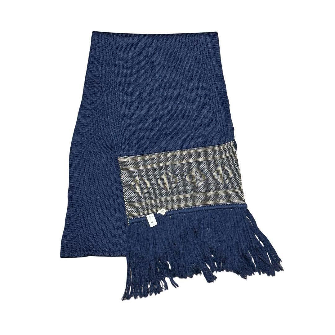 落ち着いたネイビーを基調とした色合いにCDロゴのラインがアクセントのクリスチャンディオールのウール100%のフリンジマフラーです。