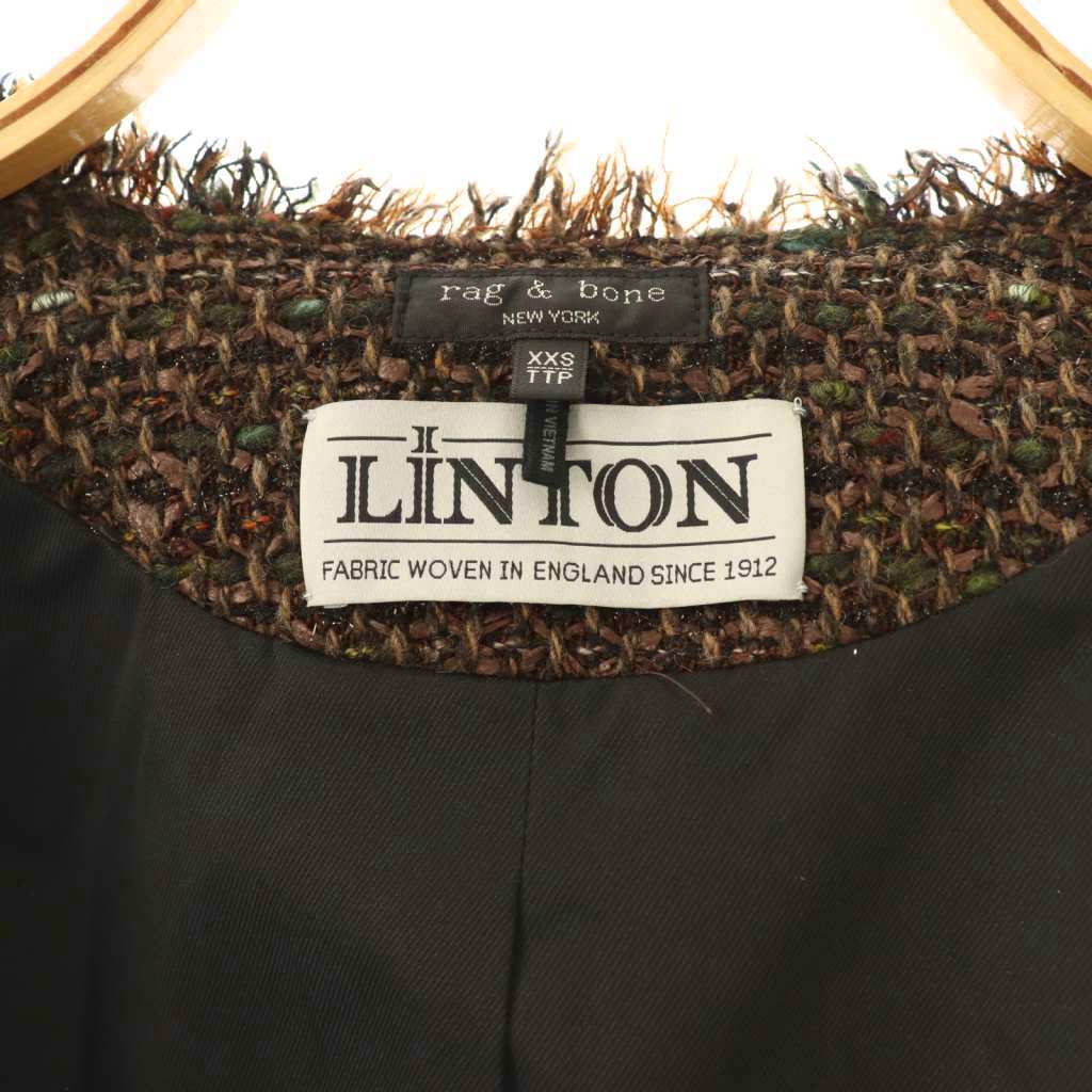 ラグ&ボーン RAG&BONE Ezra Linton Tweed Blazer ツイードジャケット ノーカラージャケット XXS ブラウン /DF ■OS ■SH レディース