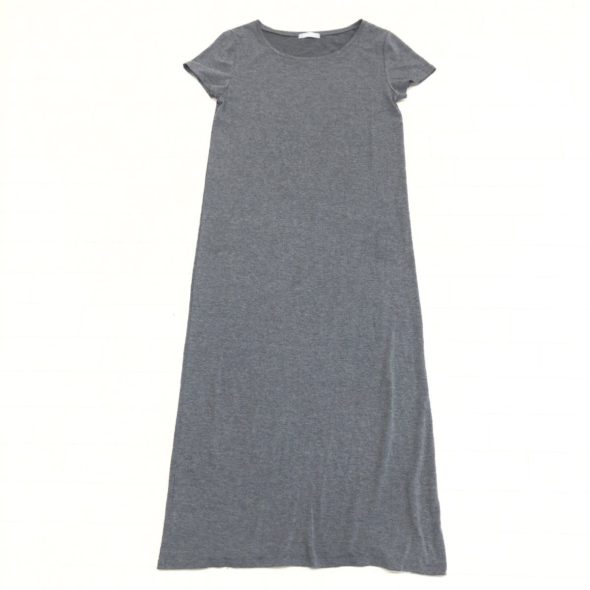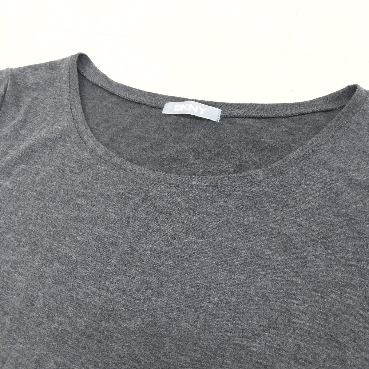 DKNY ダナキャラン ストレッチ ショートスリーブ Tシャツ ワンピース M グレー 半袖 オープンネック マキシ丈 国内正規品 レディース 婦人