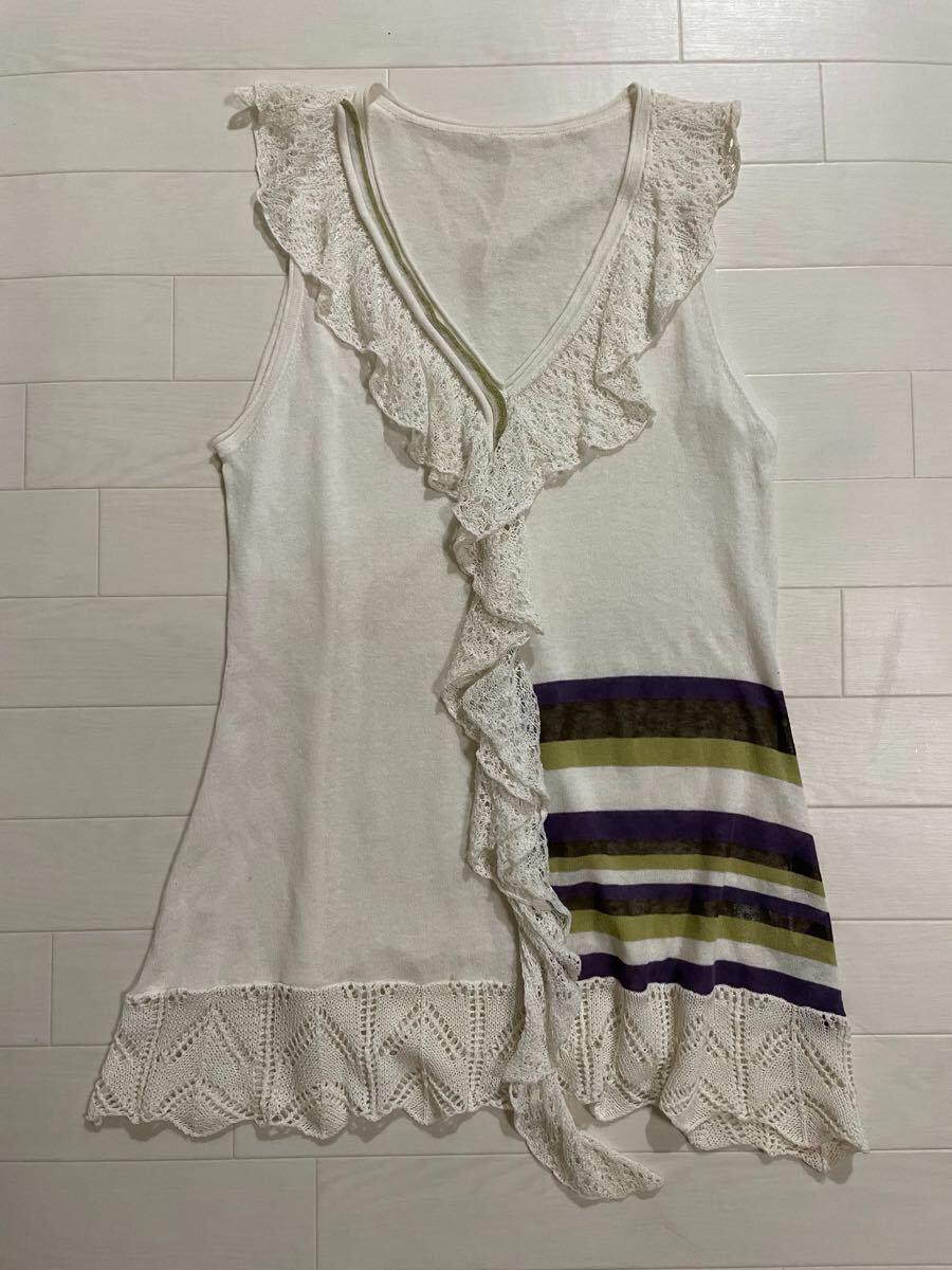 t.b ティービー sensounicoセンソユニコ フリル ニット チュニック オフホワイト size 38 商品番号YS1431