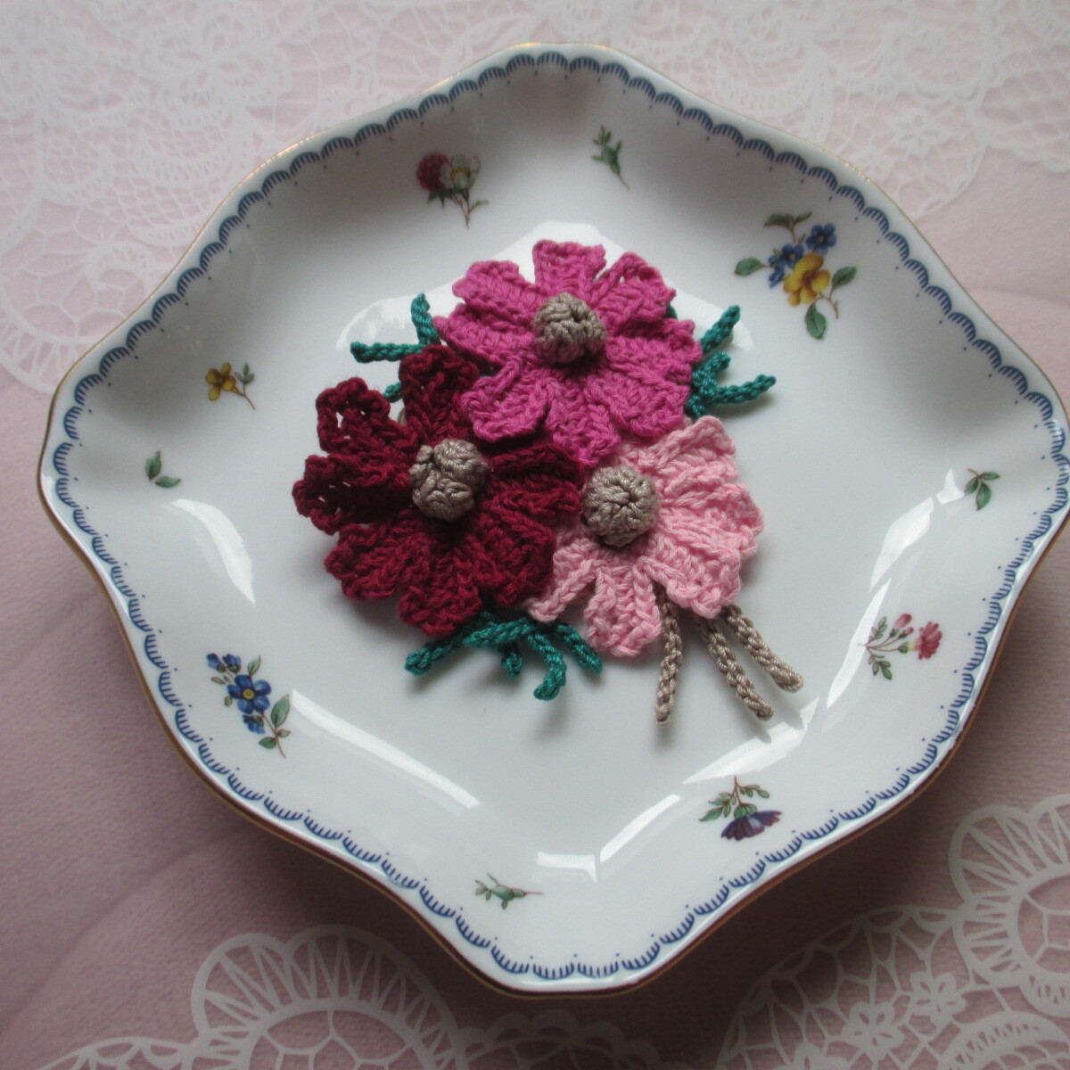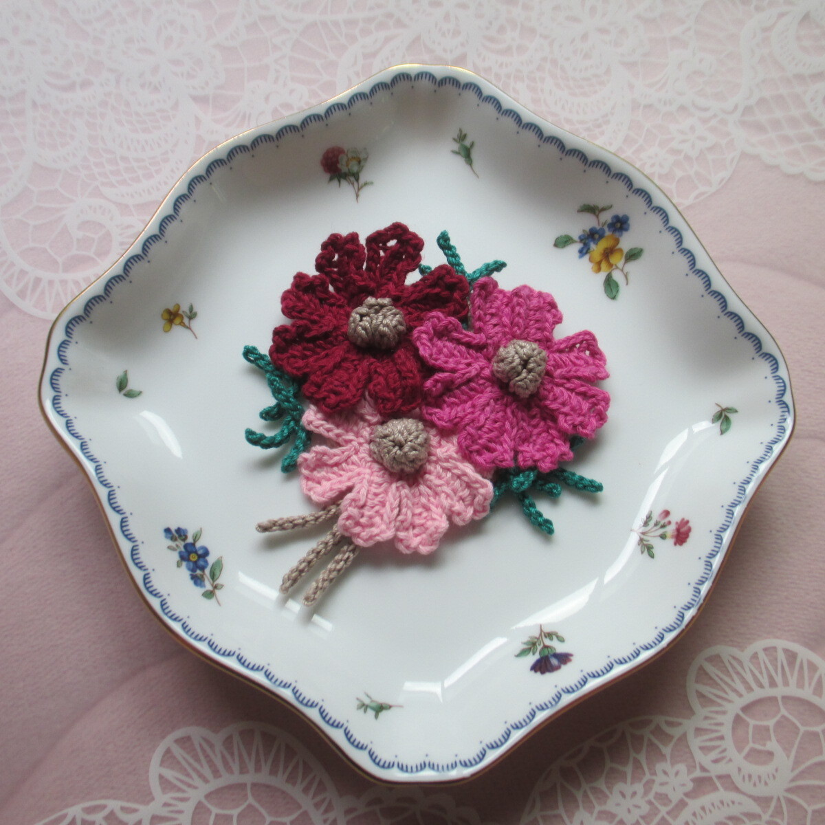 ハンドメイド☆レース編み 秋桜のコサージュ、ブローチ③