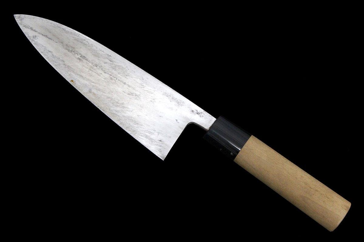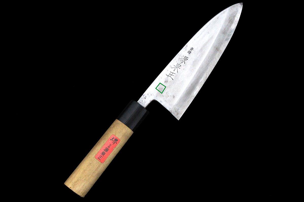 源泉正 出刃包丁 霞 六寸 PC口輪 朴柄 名入