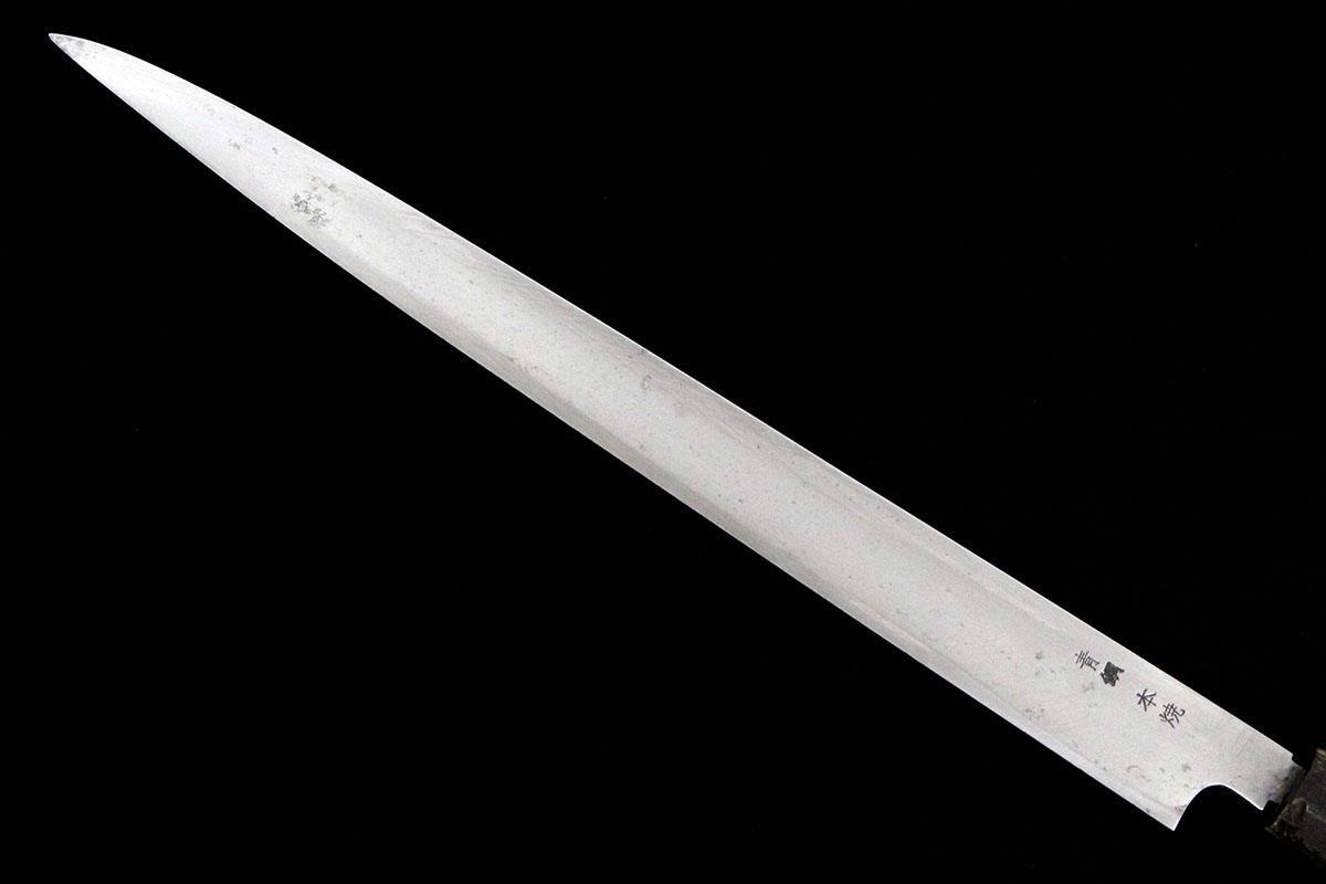 美品|武蔵守國行 河豚引包丁 本焼 尺 青鋼 黒檀柄 KN02-A9505-2L1B