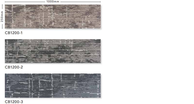 川島織物セルコン 業務用 タイルカーペット カラーバンク リバースサイド CB1200 全厚7.5mm 寸法25×100cm 12枚入り/ケース