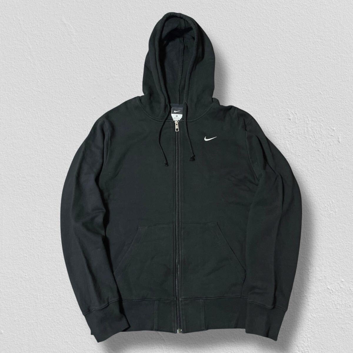 NIKEのシンプルで定番のジップアップパーカーです。 胸元の白いロゴの刺繍が映えます。軽い着心地です。