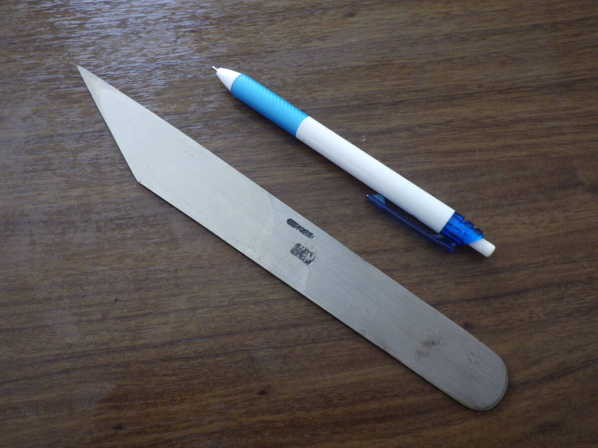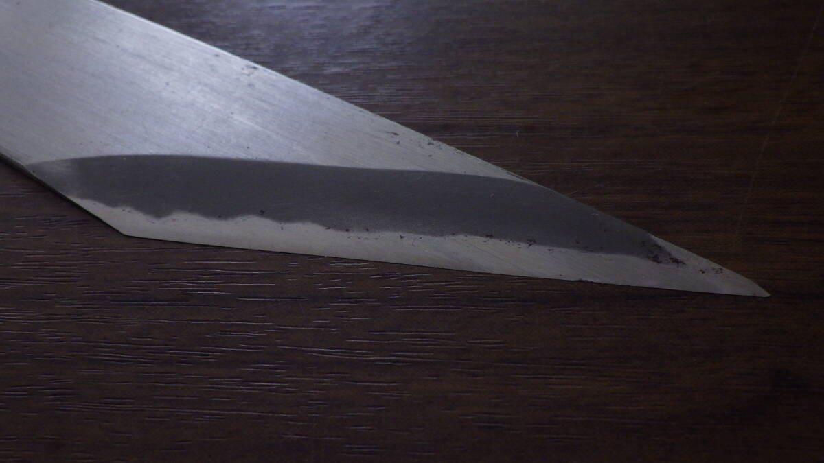 サイズは全長23.4㎝、身幅(刃の根元付近)3㎝、刃渡り7.1㎝、刃厚み峰側2㎜反対側1.4㎜です。