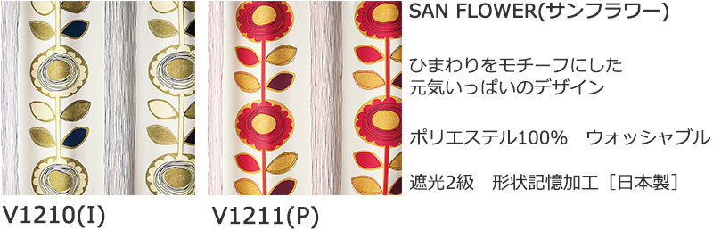 既製カーテン デザ インライフ15 スミノエ 北欧 遮 光 シアー 安価 3サイズ SUN FLOWER(サンフラワー)