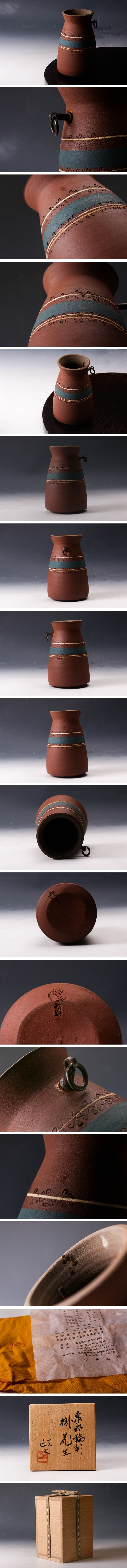 【佳香】今井政之 象嵌輪彩掛花生 共箱 共布 栞 本物保証
