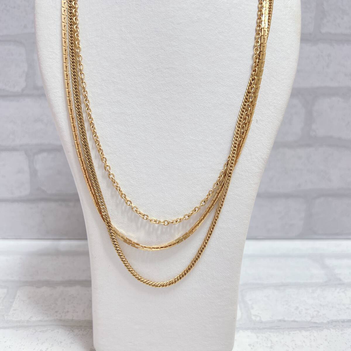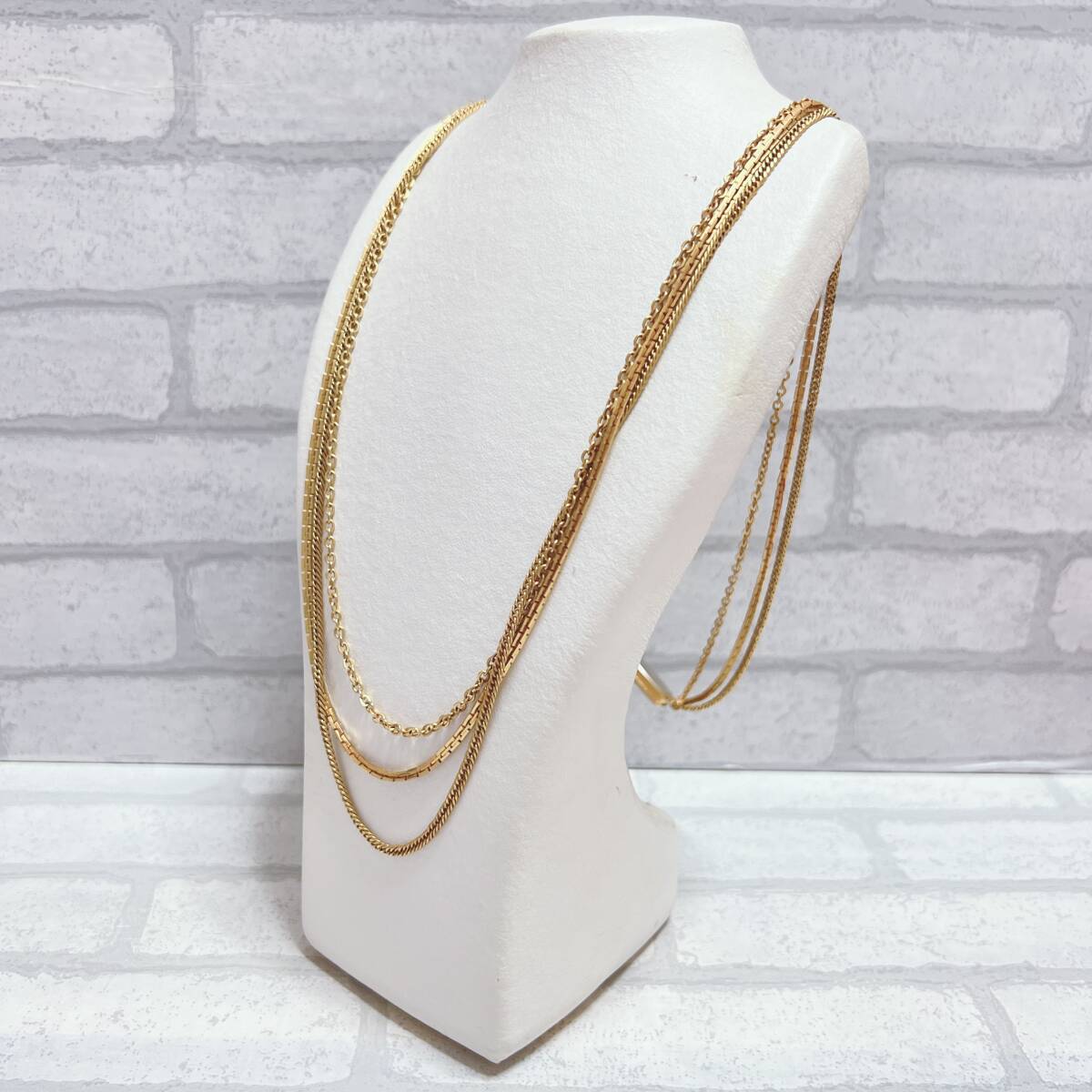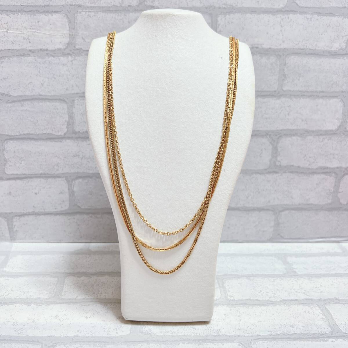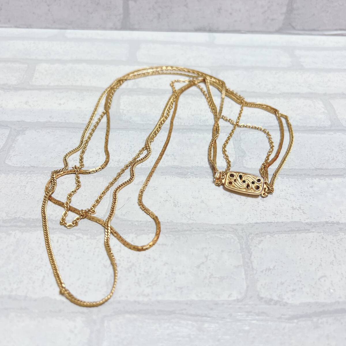 【長さ】 約70 【カラー】 ゴールド 【付属品】 なし 【刻印】 なし ご質問等お気軽お待ちしております。 発送はお振込み確認後、即日発送、翌日発送にて ご対応させていただきます。 *状態は画像参照をお願いいたします。 *安価提供の為 石、材質等は分かりかねます。 アンティーク ヴィンテージ ネックレス gold ゴールド チェーン デザイン 3連 シンプル アンティーク ヴィンテージ EL-0783 | |