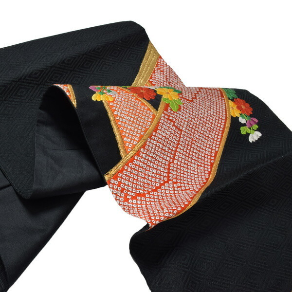 黒地のためほとんど目立ちませんが、手先 垂れ先 糸浮きあり