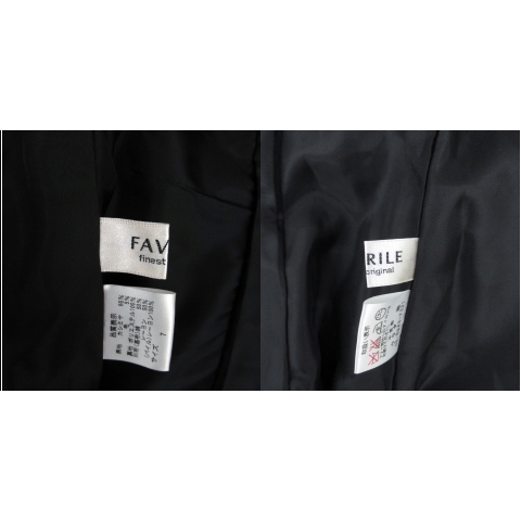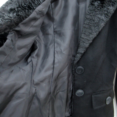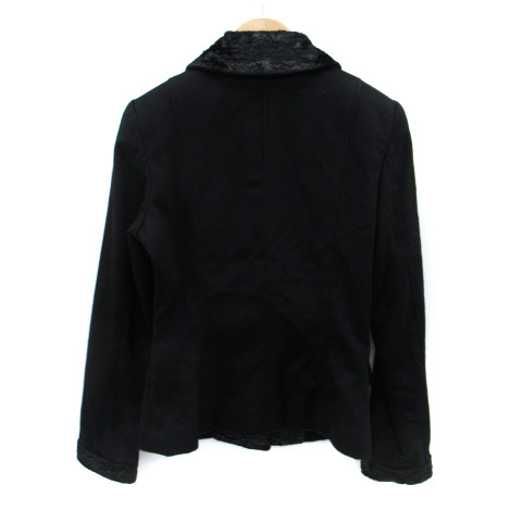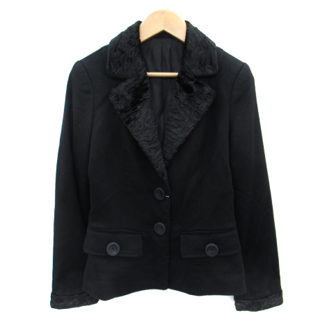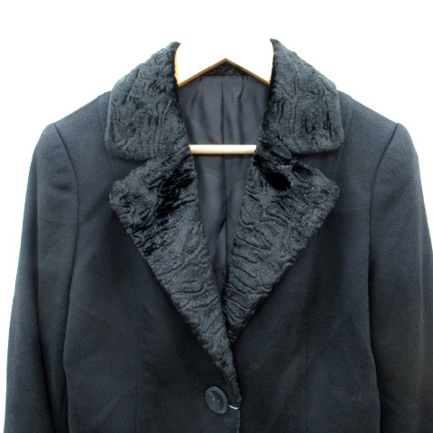 FAVRILE テーラードジャケット ミドル丈 シングルボタン 総裏地 ベルベット 切替 カシミヤ 7 黒 ブラック /SM1 レディース