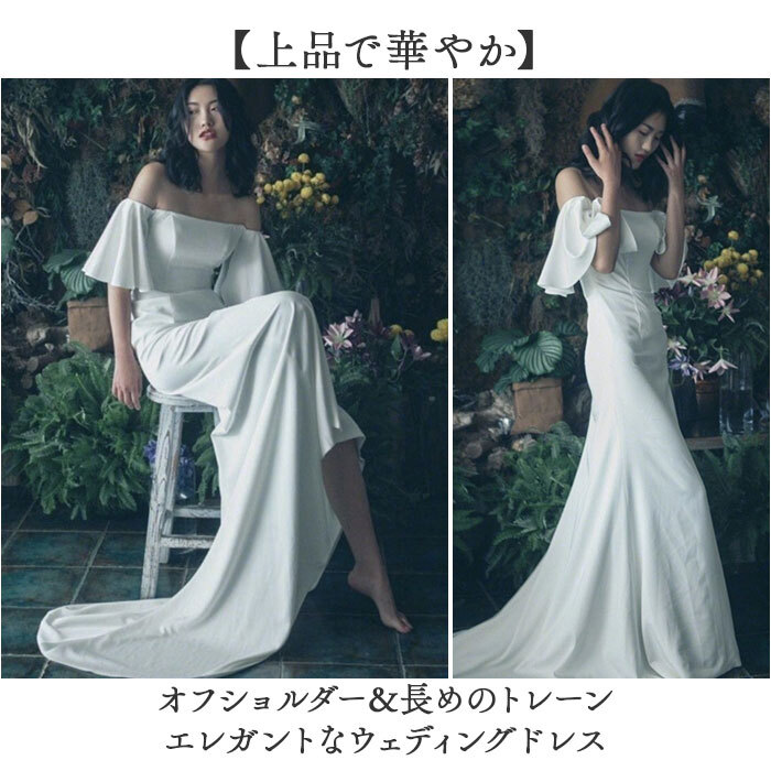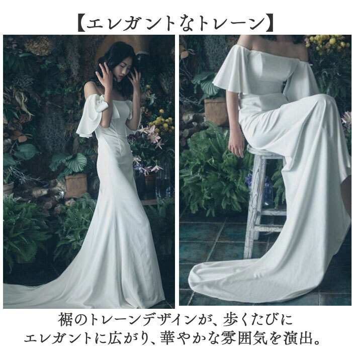 | 商品説明 | ・・【上品で華やか】 ・オフショルダー&長めのトレーン エレガントなウェディングドレス ・ ・【背面デザイン】 ・オフショルダーデザインで、華やかな印象を与える。 ・ ・【エレガントなトレーン】 ・裾のトレーンデザインが、歩くたびにエレガントに広がり、華やかな雰囲気を演出。 ・ ・【シンプルでありながら美しい】 ・シンプルなデザインでありながら、流れるようなラインが美しく、上品な印象を与える。 ・ ・【高品質なポリエステル素材】 ・ポリエステル素材で、軽やかで動きやすく、長時間着ていても快適。 ・ ・【ショルダーストラップつき】 ・綺麗めに着たいときは内側に隠して、ズレ落ちが心配な時は肩にかけて着られる。ゴム入りショルダーストラップつき |
