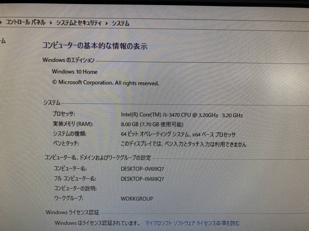 ドスパラ Diginnos/Core i5-3470/8GB/SSD128GB HDD500GB//DVDマルチドライブ/Windows 10/中古動作品