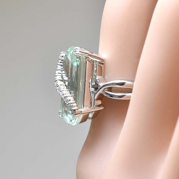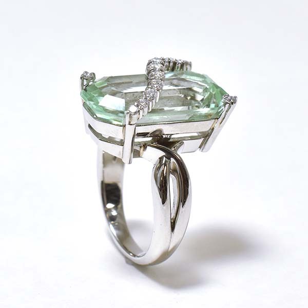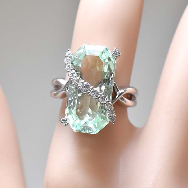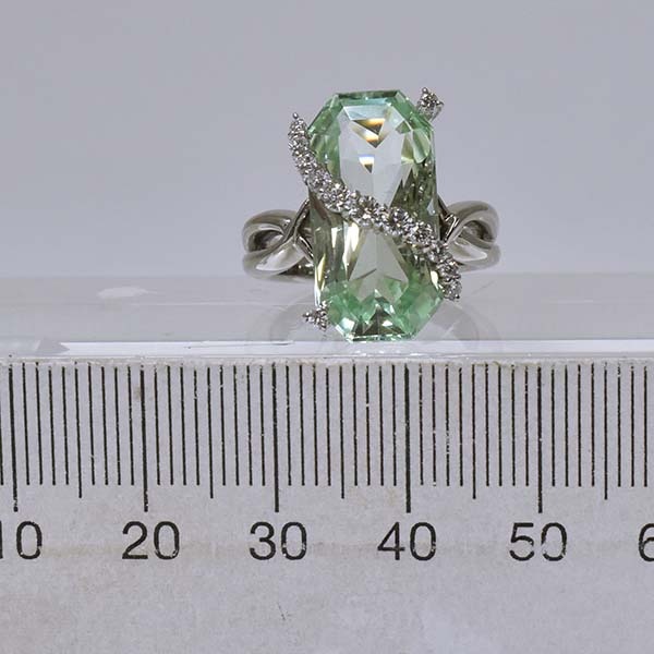 ヒデナイトにダイヤを這わせたプラチナ製のファッションリング。