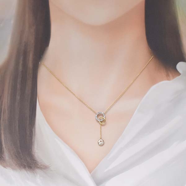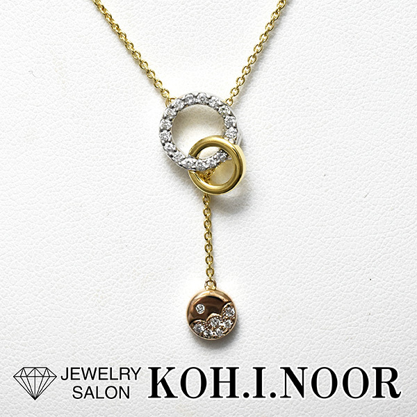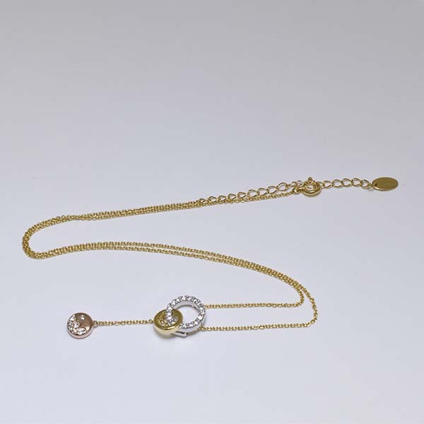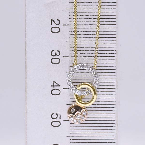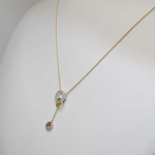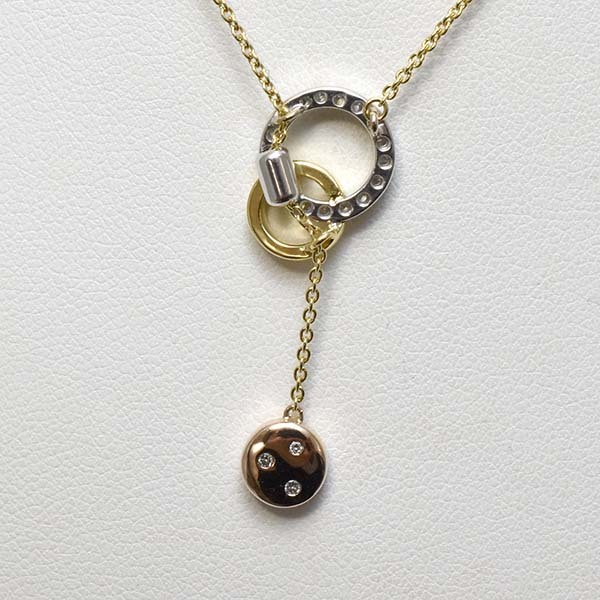 スリーゴールドでサークルモチーフをデザインしたヴァンドームの18金製スライドネックレス。