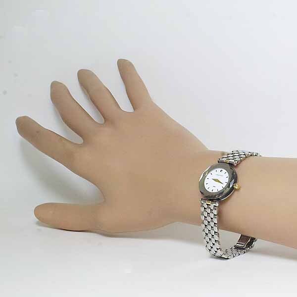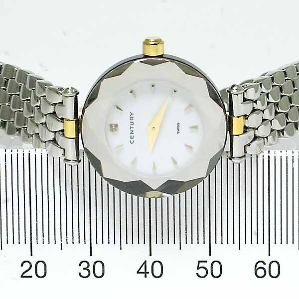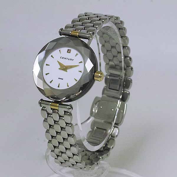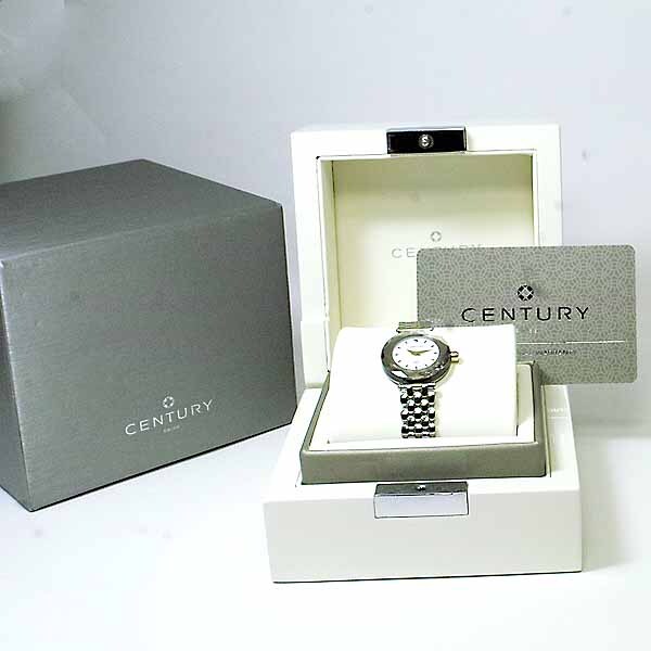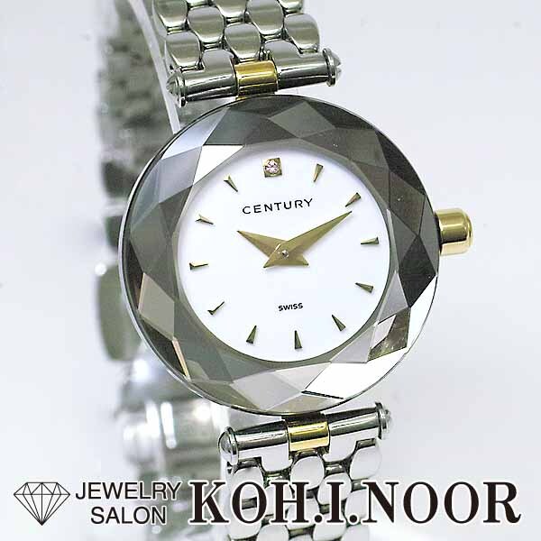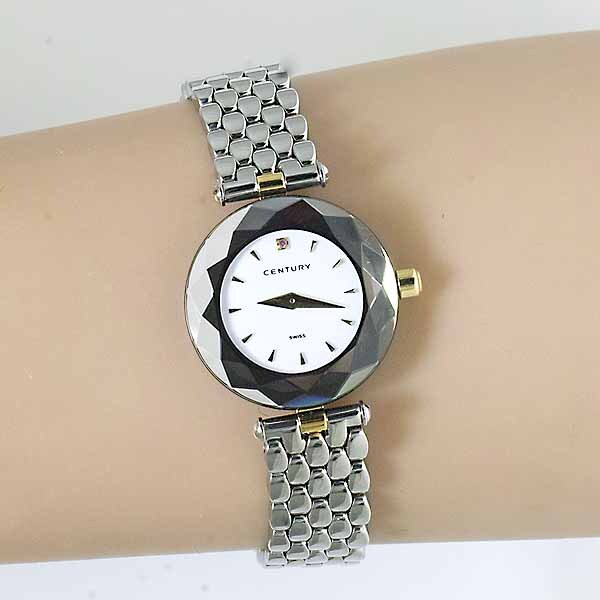 12時位置にピンクの石が光るセンチュリーのレディースウォッチ、セレステ。
