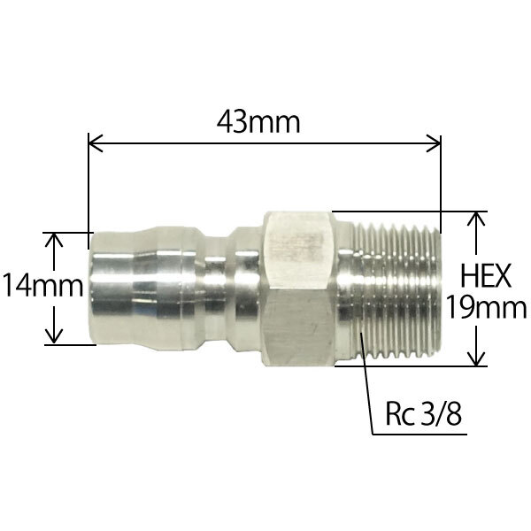 サイズ 3/8プラグ(オス)・3/8 オネジ(R)