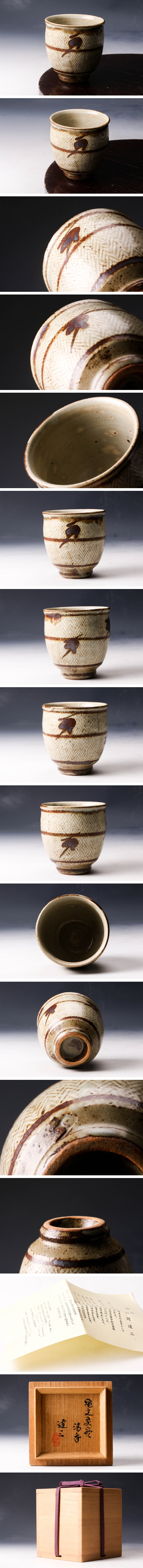 【佳香】人間国宝 島岡達三 縄文象嵌湯呑 共箱 栞 本物保証