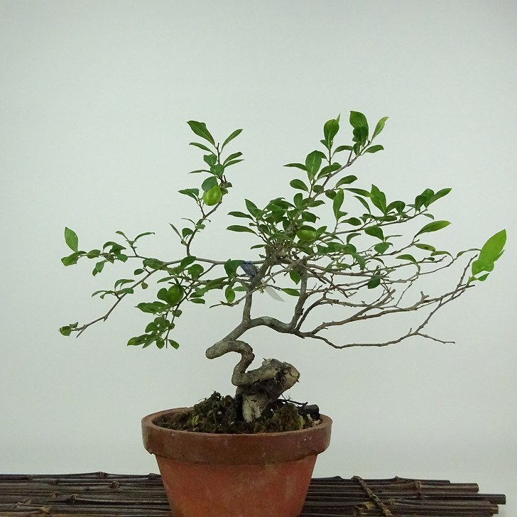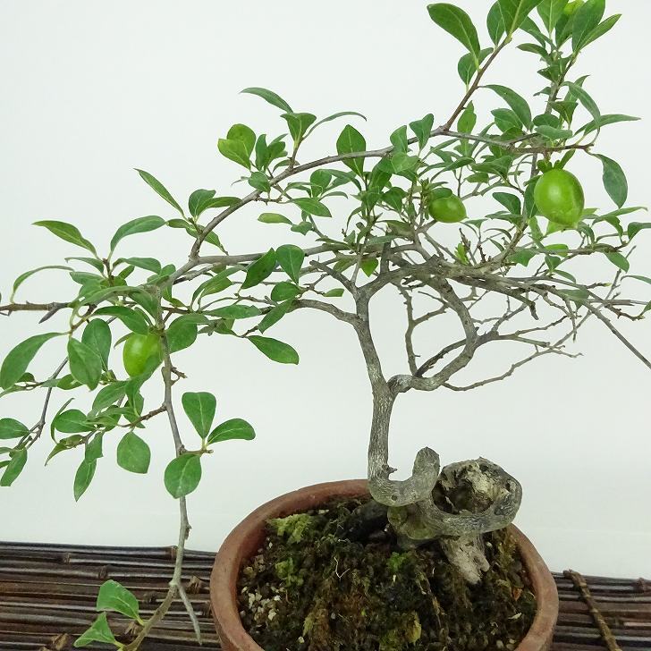 ■植物ですので撮影時期や季節によって剪定などの手入れにより写真から変化がございます。撮影日をご確認のうえ、ご注文ください。 ■翌年の実付きをよくするために葉が落ちた後の11月末~12月にかけて摘果しています。お届けの商品にはロウヤガキの実がない場合がございます。 ■老爺柿の種類は沢山あり、品種の記載がない商品は仕入れの時点で確認ができておりませんので、その旨ご了承のほどお願いいたします。 【老爺柿盆栽】 開花時期は4~5月頃に花を咲かせます。雌雄異株で、実を成らすためには雌木と雄木が必要になります。小さな実が成る渋柿で、実が枝にぶら下がって成る特徴があります。老爺柿は沢山の品種があり、実の形状や色も様々で、丸い形から細長くとがったもの、大きさも大小があり、色合いも赤みを帯びた橙色から黄色、朱赤など豊富にあります。 |
