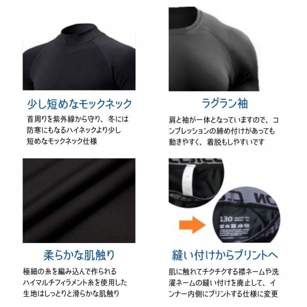 お子様の肌に触れるその商品、本当に大丈夫? 着替えも恥ずかしくない! ぴったりフィットでもサラサラでインナーが気にならない! シンプルさを追求し、日本国内でデザイン・監修した完全オリジナルなUHブランドインナー。 コンプレッションインナーとしてお子様のスポーツやトレーニングに力を発揮!筋力をサポートしてパフォーマンスを上げ、 筋損傷の回復効果があることを確認した研究から、疲労回復効果もあります。ユーエイチブランドの製品は日本国内の品質評価機構にて生地検査合格を取得。紫外線防止指数の測定値はUPF50+、紫外線遮蔽率は99.8%でお子様の日焼け防止効果も抜群です。吸汗速乾なスポーツインナーは長時間のスポーツでも快適に過ごすことができます。衿口はオールシーズン使うからハイネックより短めなモックネック。ハイマルチフィラメント糸を使用した生地は柔らかな肌触りで、夏冬問わず全シーズンに対応!肩と袖が一体となっている着心地のいいラグラン袖仕様のため、着るのも脱ぐのもカンタンで、ピッタリフィットでも4方向ストレッチ素材が動きやすくし、日常的に通学用や日焼け防止、防寒用インナーとしても使えます。 ■組成表示■ ポリエステル92% ポリウレタン8% ■使用環境■ 野球、サッカー、フットボール、フットサル、ラグビー、陸上、テニス、バスケットボール、バドミントン、バレーボール、卓球、ソフトボール、ジョギング、ランニング、トレーニング、スキー、スノーボード、ダンス、ヨガ、フィットネス、登山など、あらゆるスポーツに対応したコンプレッションインナーがお子様のパフォーマンスを向上させます。 本体とステッチが同色のため、公式戦にも対応してます。 ※ご利用のパソコン、モニター環境によって、画像の色味が異なって見える場合がございます。予めご了承下さい。 | ||
