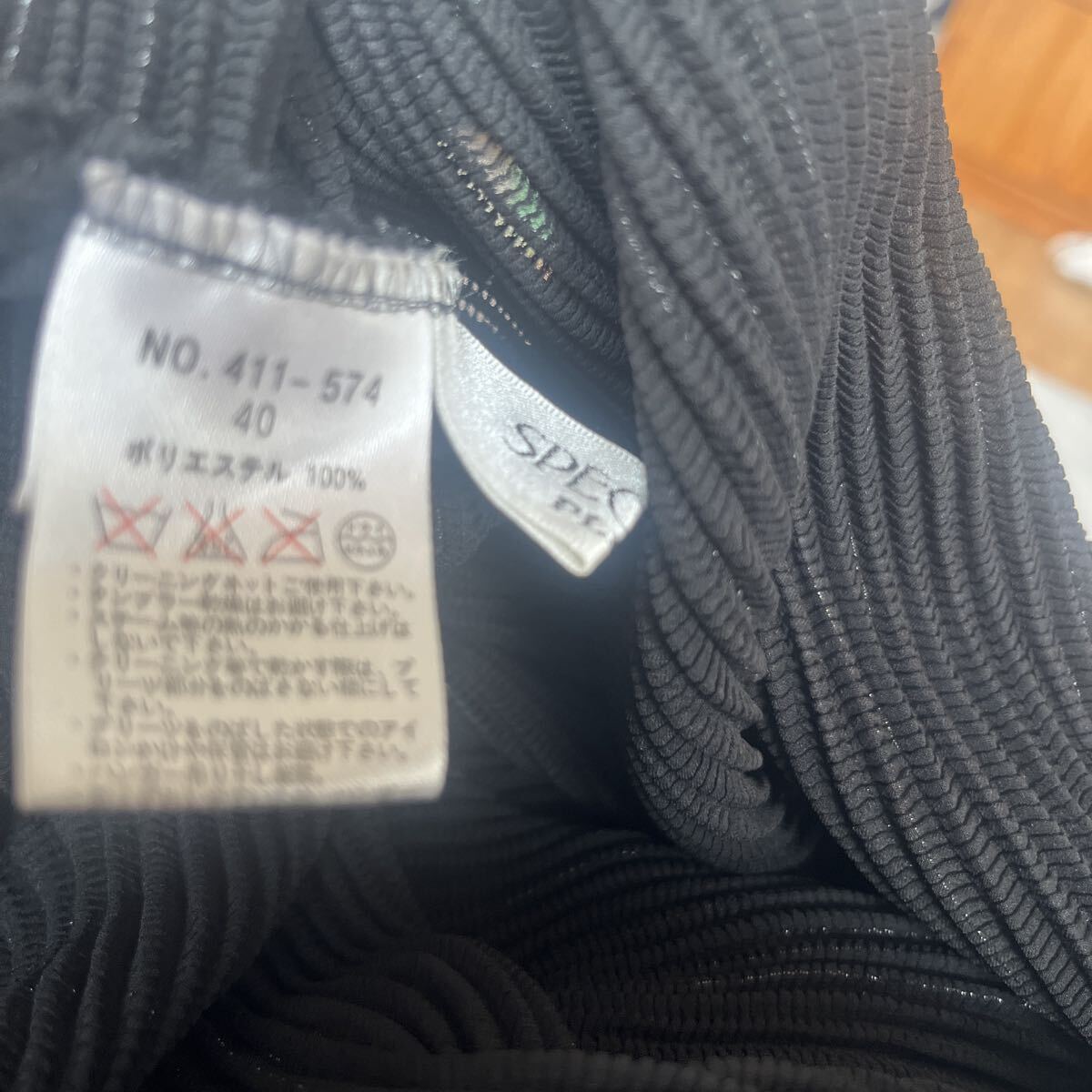 SPECCHIO pleats になります。サイズは40。ポリエステル100。数回着用、目立つ汚れは見当たりません。
