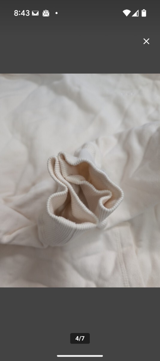 お色はアイボリー、胸のロゴ刺繍、お袖のロゴワッペンが素敵です。
