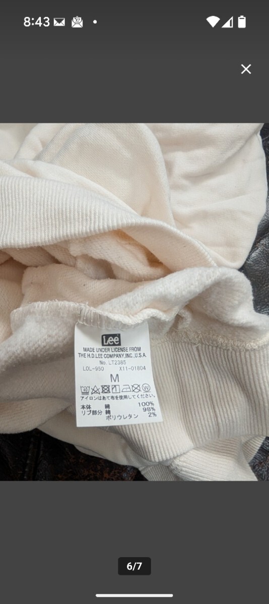 美品!新品同様、Lee☆アイボリーカラー、裏起毛、パーカー、サイズМになります。