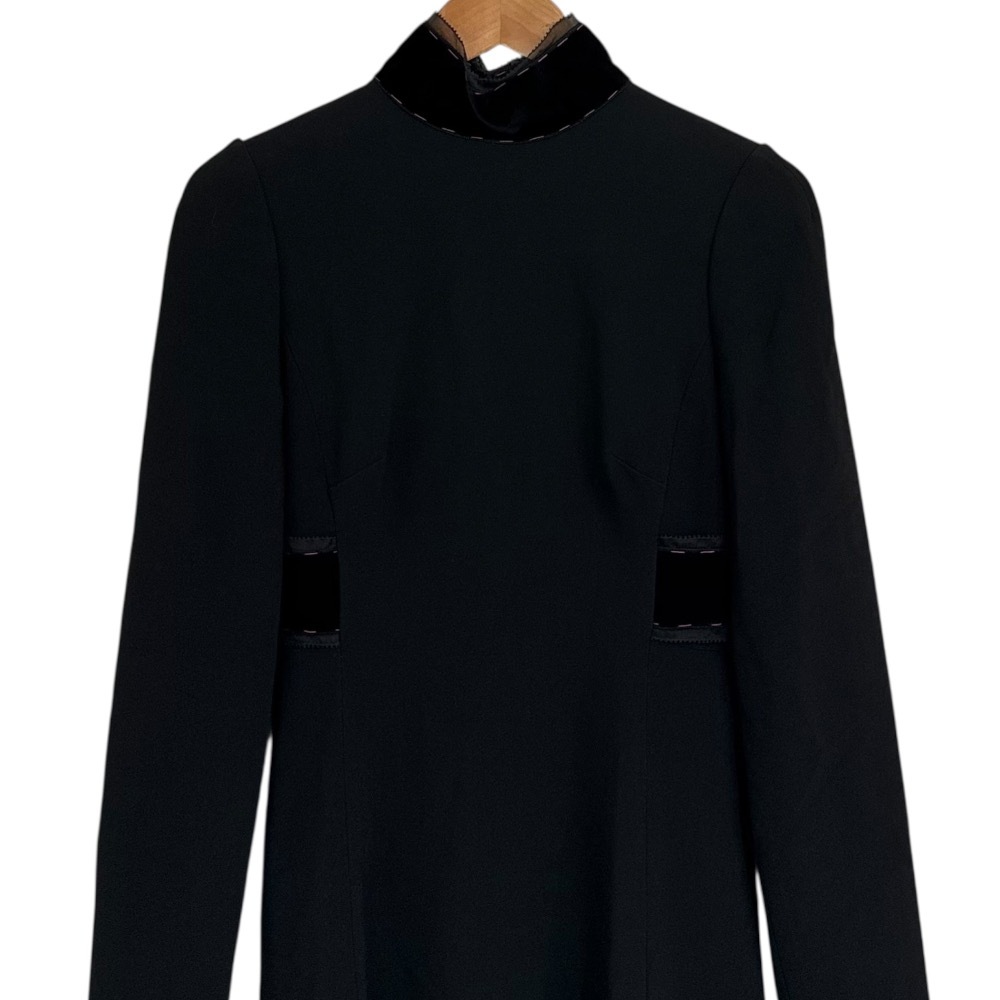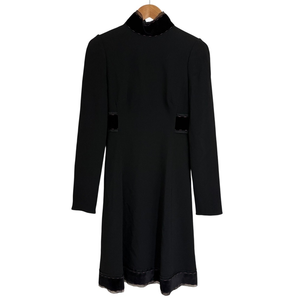 商品名:DOLCE&GABBANA ドルチェ&ガッバーナ シルクブレンド 長袖 ハイネック デザイン フレアワンピース サイズ38 ブラック
