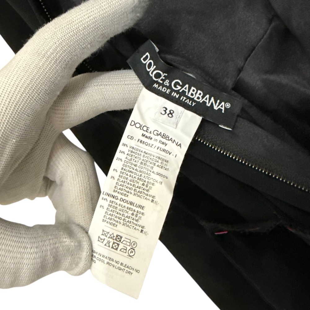 美品 DOLCE&GABBANA ドルチェ&ガッバーナ シルクブレンド 長袖 ハイネック デザイン フレアワンピース サイズ38 ブラック