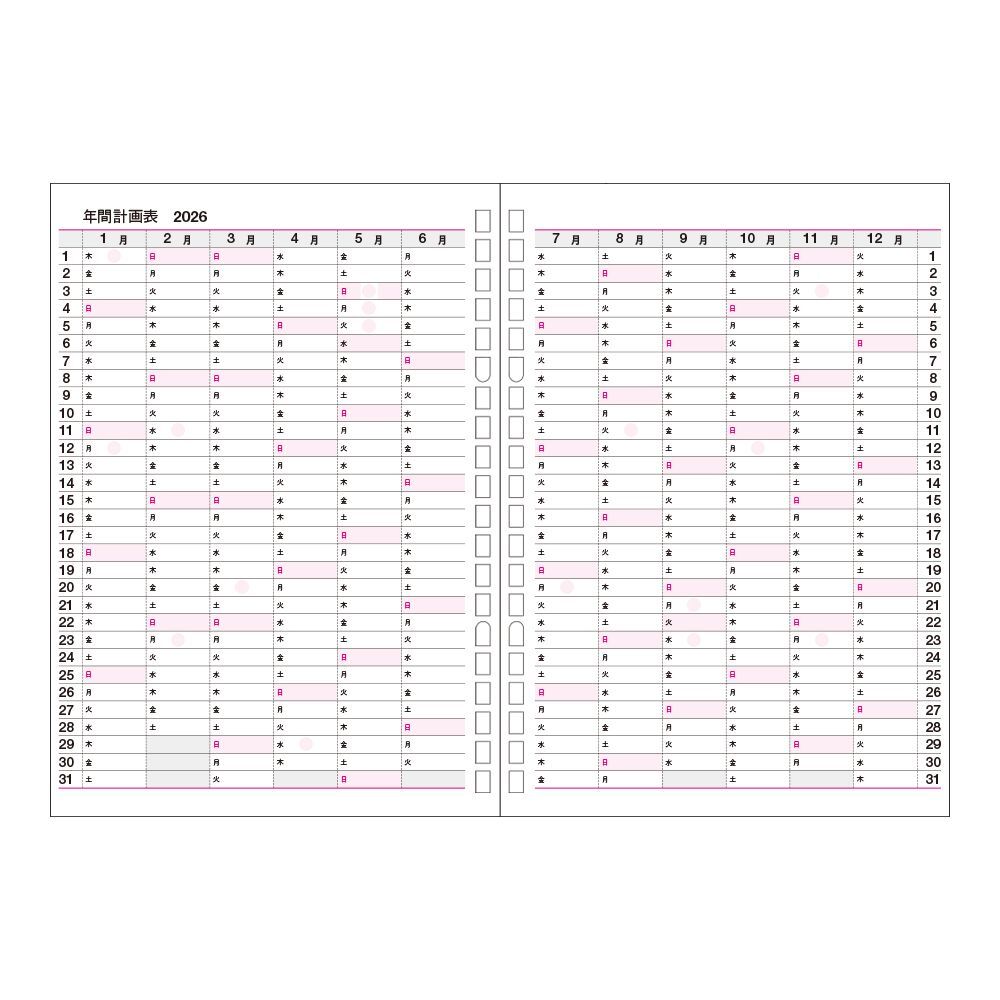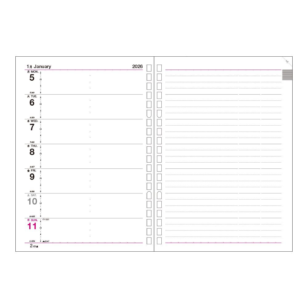 見開き1週間の余裕ある書き込みスペースは、1954年の発売以来の特徴として受け継いでいます