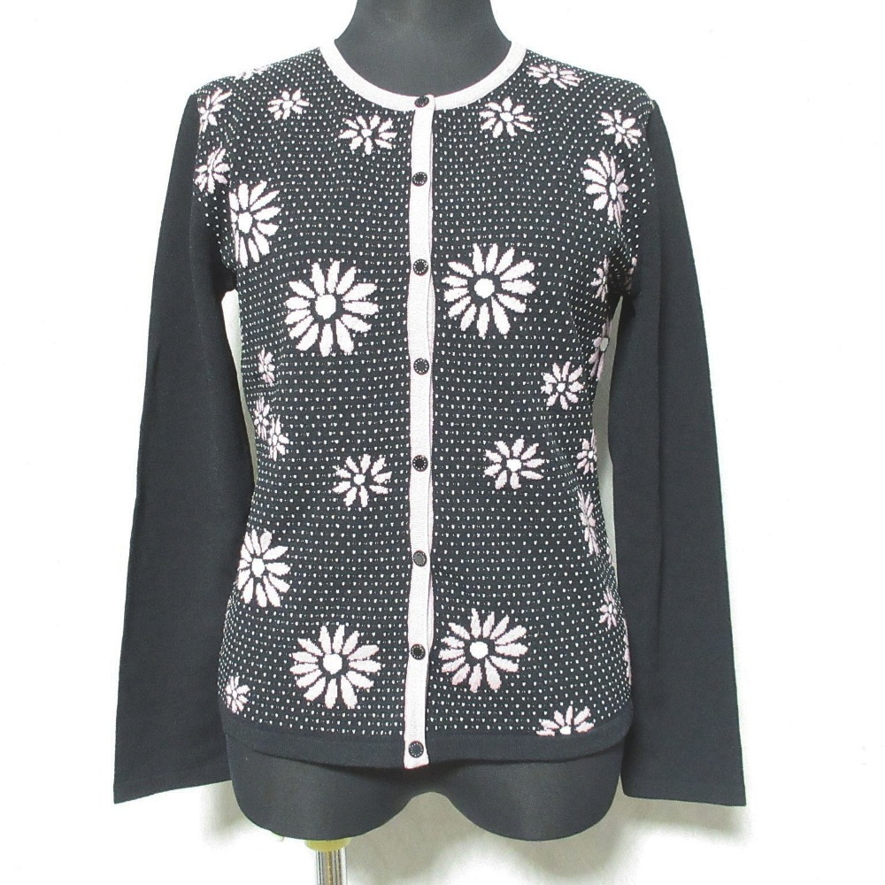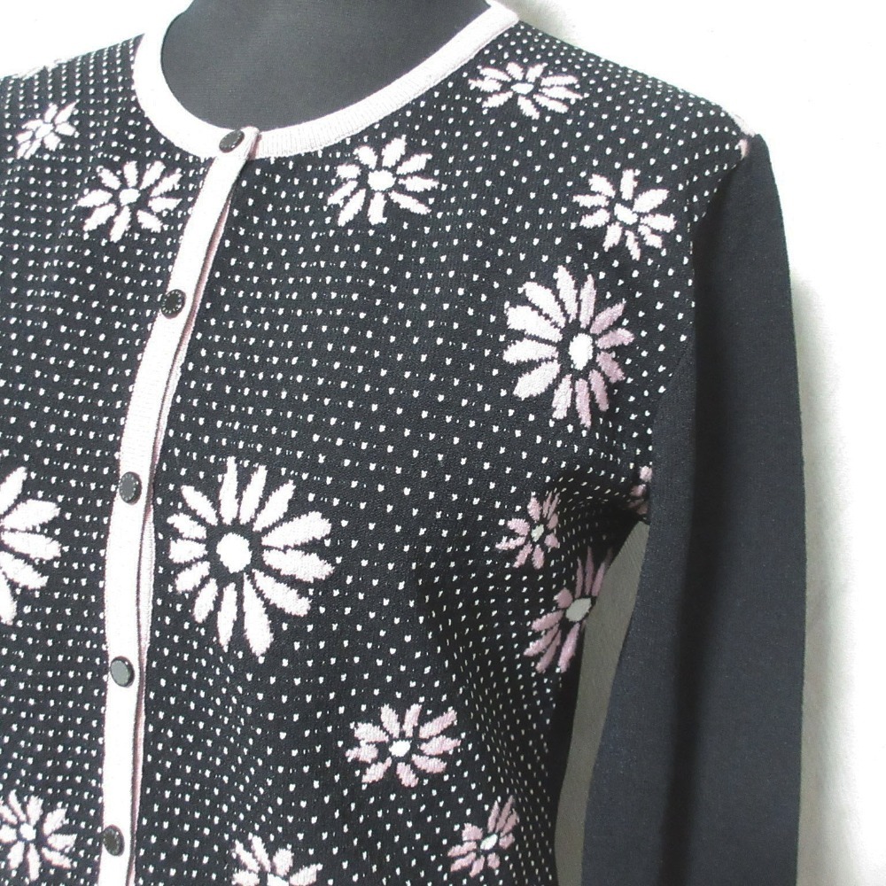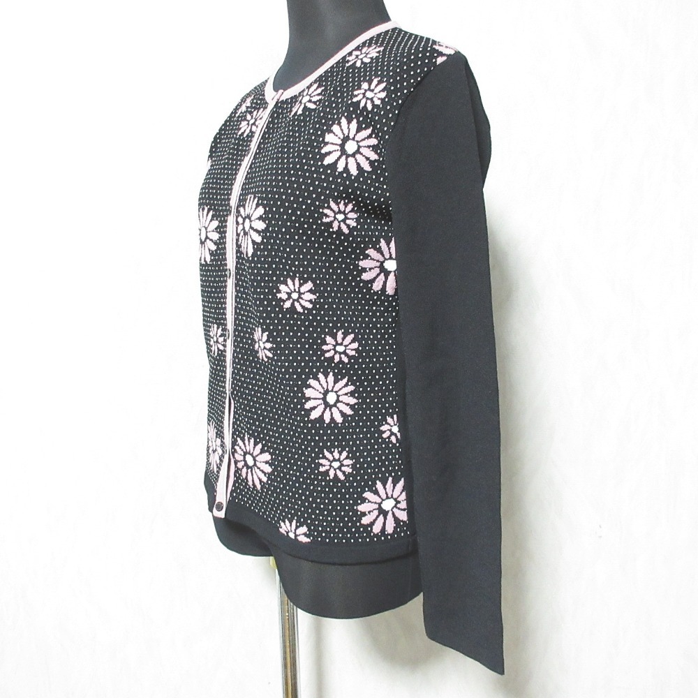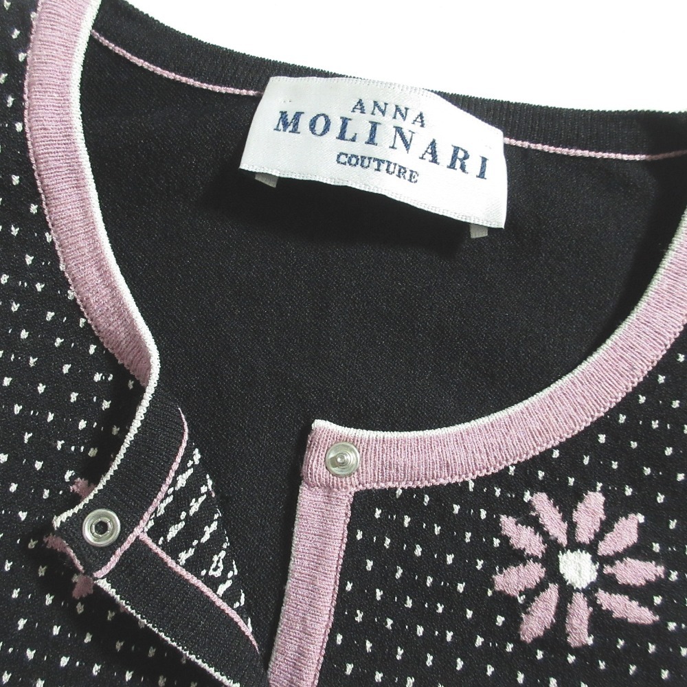 美品 ANNA MOLINARI COUTURE アンナモリナーリ フラワージャガードニットカーディガン サイズ44 ブラック