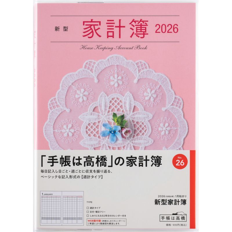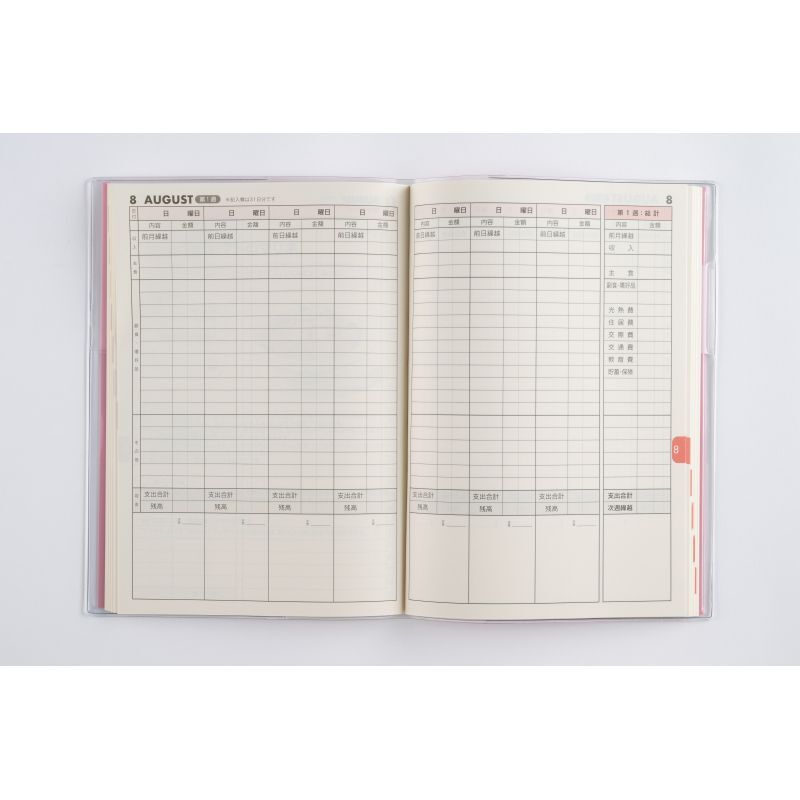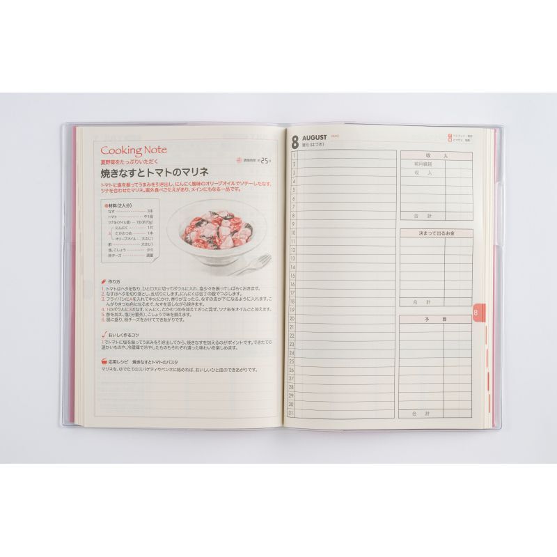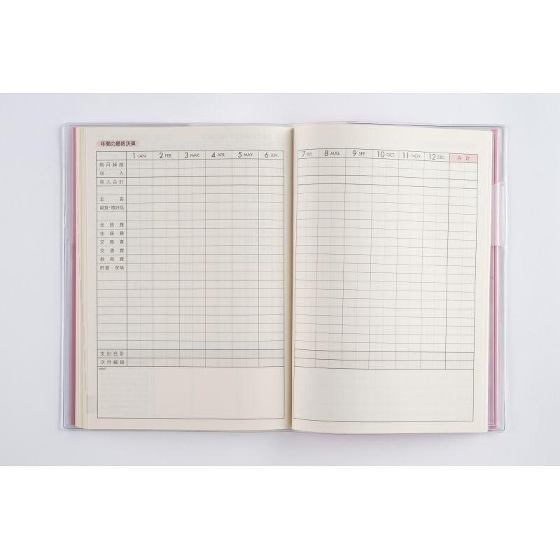 家計簿の中でも王道の週計タイプは、1日ごと・週ごとの収支を管理するのに便利。暮らしに役立つコラムや料理のレシピも入っています。レシートやカード等をスッキリ収納できる特製フリーポケット付き。ペンホルダー付き