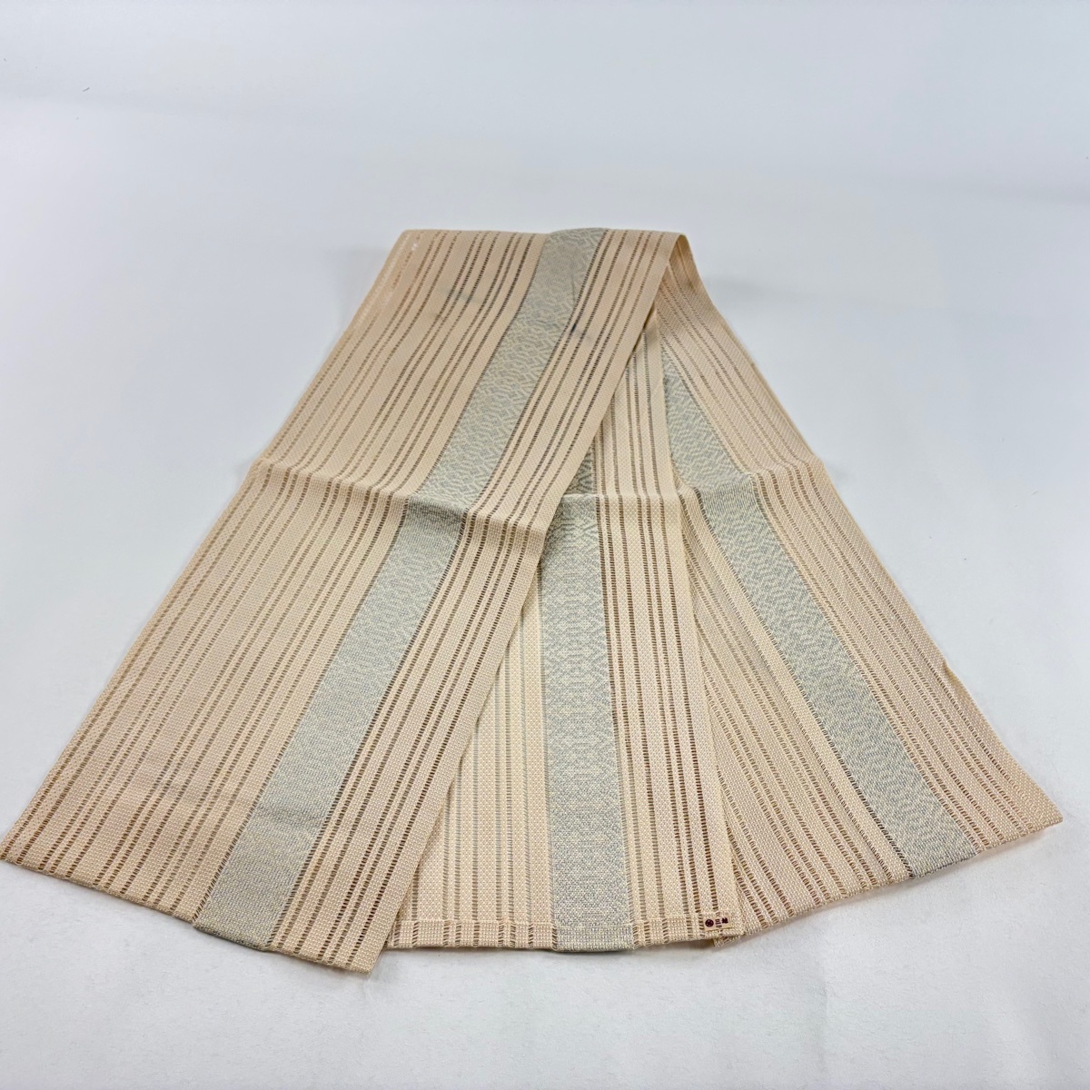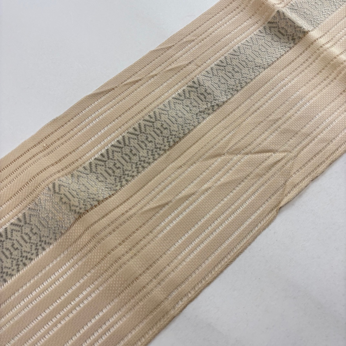 | 名古屋帯 秀品 夏帯 八寸名古屋帯 独鈷 縞 ベージュ 正絹 【中古】 |